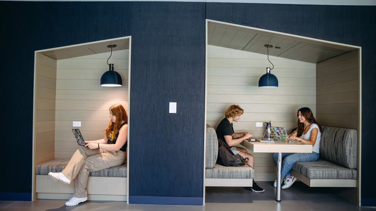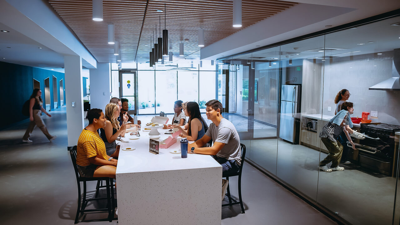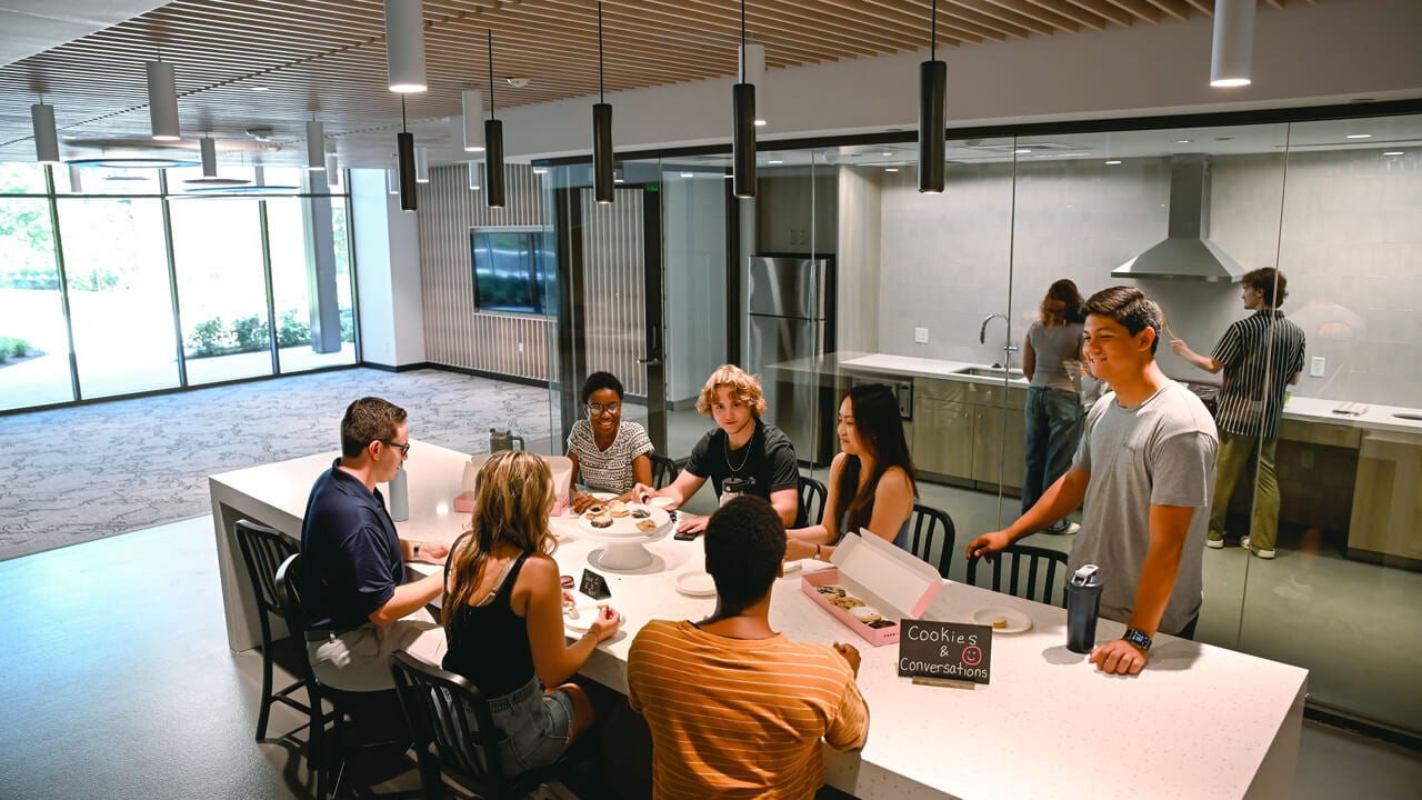 The residence hall, which opened in Fall 2024, includes singles and doubles, accommodates more residential students on campus and enriches the living-learning experience. Carefully designed to promote extracurricular opportunities for students, the air-conditioned building includes group gathering spaces, lounges and an outdoor courtyard to help build community while also advancing career readiness and emotional wellbeing.