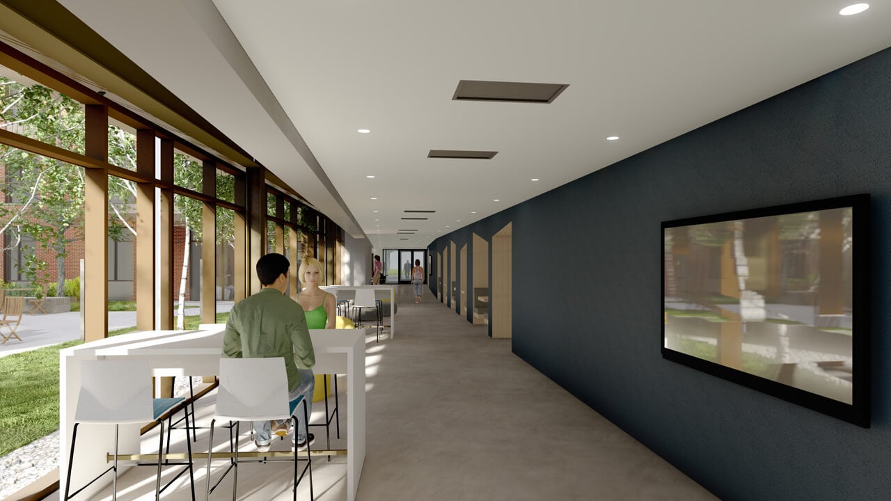 The residence hall, which opened in Fall 2024, includes singles and doubles, accommodates more residential students on campus and enriches the living-learning experience. Carefully designed to promote extracurricular opportunities for students, the air-conditioned building includes group gathering spaces, lounges and an outdoor courtyard to help build community while also advancing career readiness and emotional wellbeing.