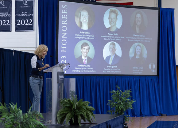 The Center for Staff and Faculty Excellence recognizes the exemplary work of our faculty and staff at Quinnipiac University. Each year, six distinguished members of our community are honored for their dedication to the university and their significant contributions to Quinnipiac's evolution as the University of the Future.