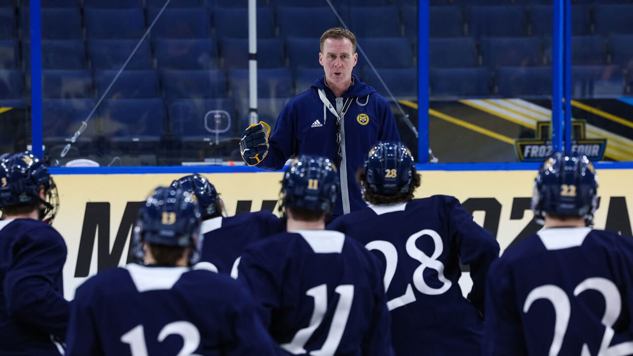The 56-year-old had looked so composed a few hours earlier on this April night in Tampa, Florida, delivering the final pregame speech of this charmed third trip to the Frozen Four. In fact, the pep talk was remarkably similar to the 40 that preceded it.