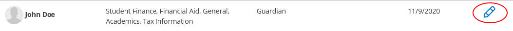 At any time, the student may edit the privileges of their proxies by clicking on the pencil and editing access. Access may also be taken away completely.