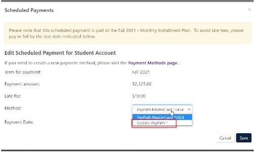 Follow the steps below if the student has an ACH scheduled payment via PayPath and wants to update to a different checking account.