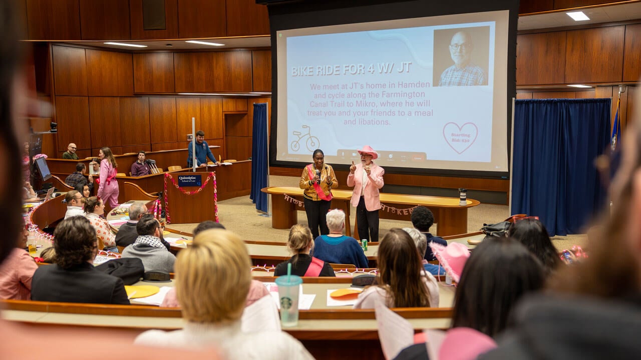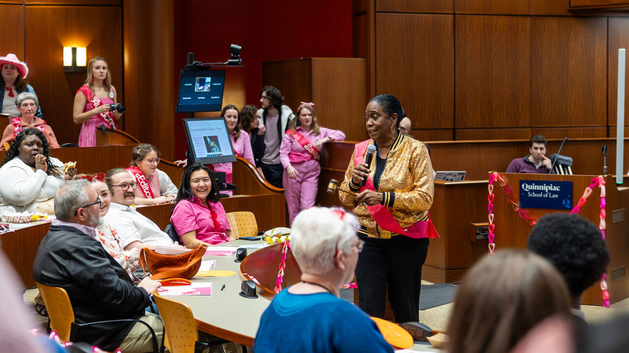 The Quinnipiac School of Law community dedicated the 31st annual PILP Auction in memory of Melanie Abbott, an alumna, retired law professor, and PILP founding advisor. Abbott passed away on February 13, 2024.