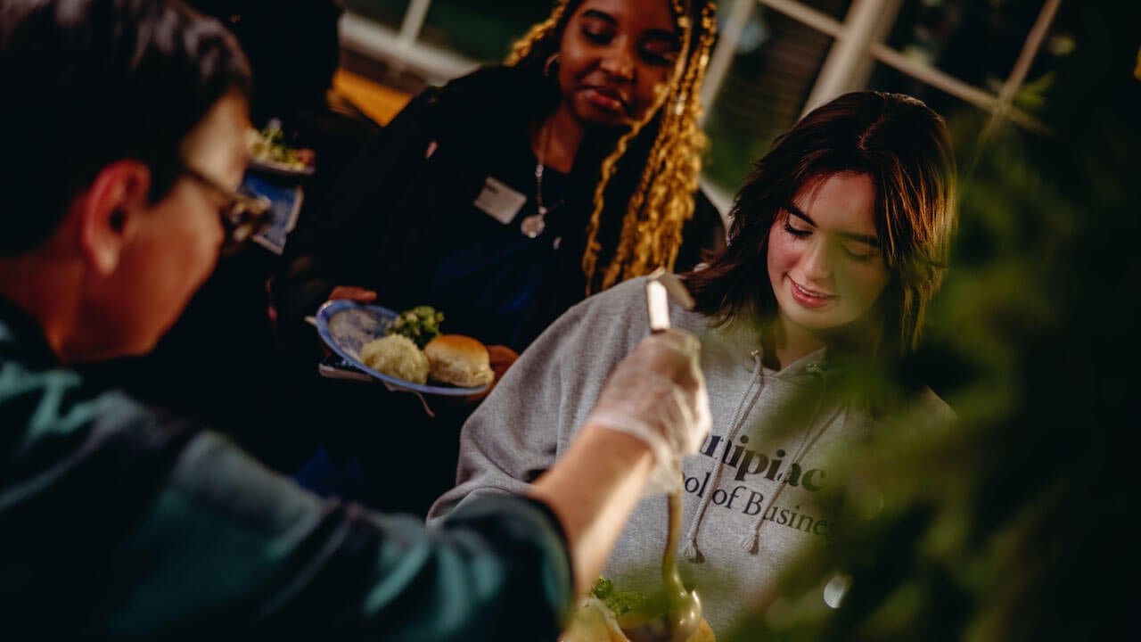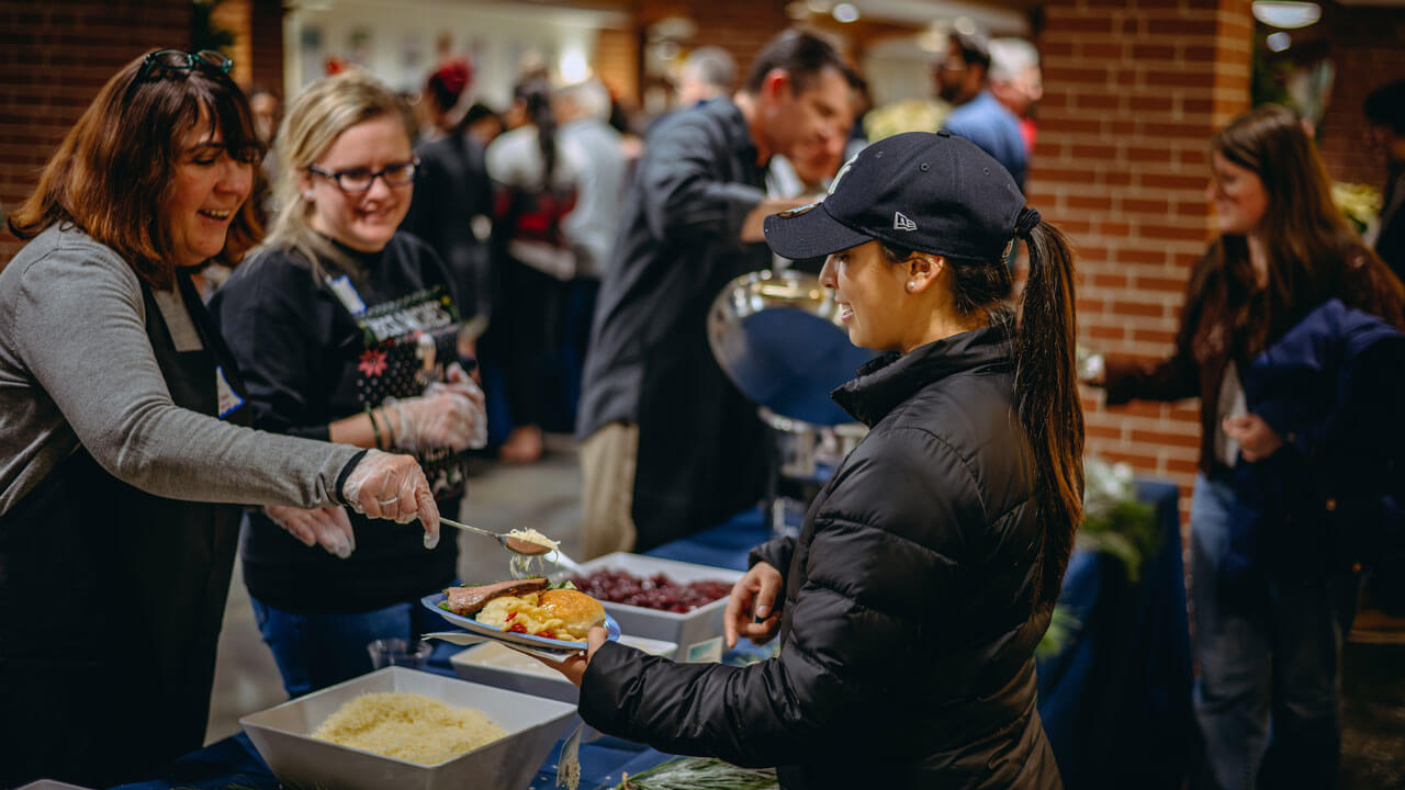 More than 1,500 undergraduate students shared in camaraderie, fun activities and a special holiday meal served up by nearly 150 university faculty and staff.