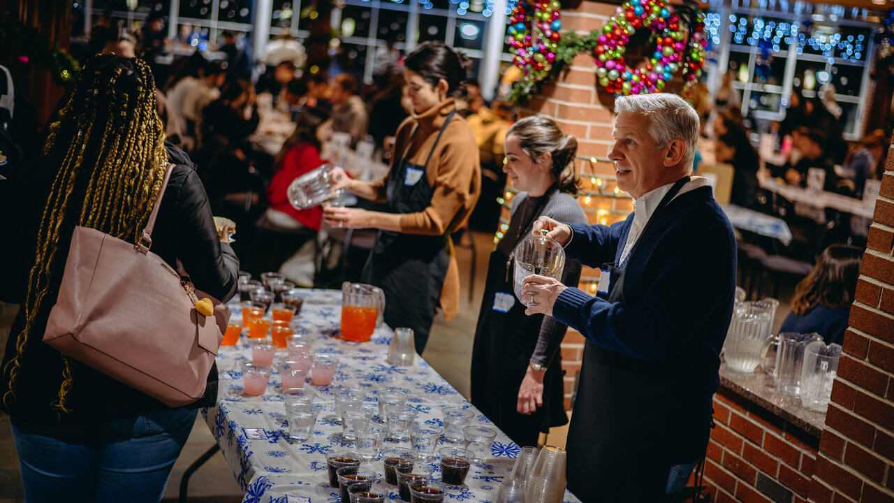 President Olian’s husband, Peter Liberti, said he enjoys helping out at the undergraduate holiday dinner each year.