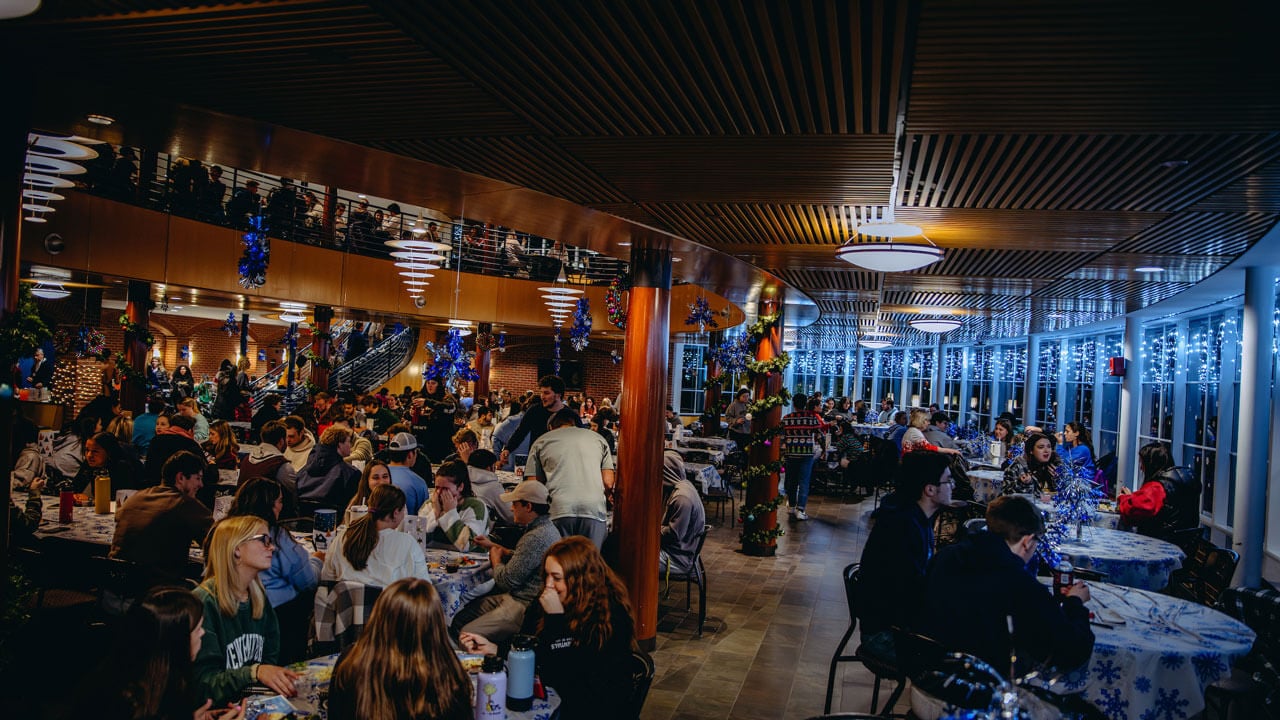 Students were also wowed by the holiday transformation of the Carl Hansen Student Center. Blue and white decorations and lights shimmered in the dining hall, and candy-cane themed gingerbread decorating stations led to the dessert buffet on the second level.