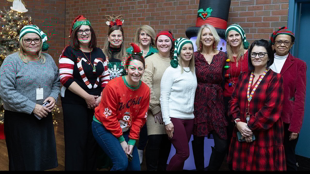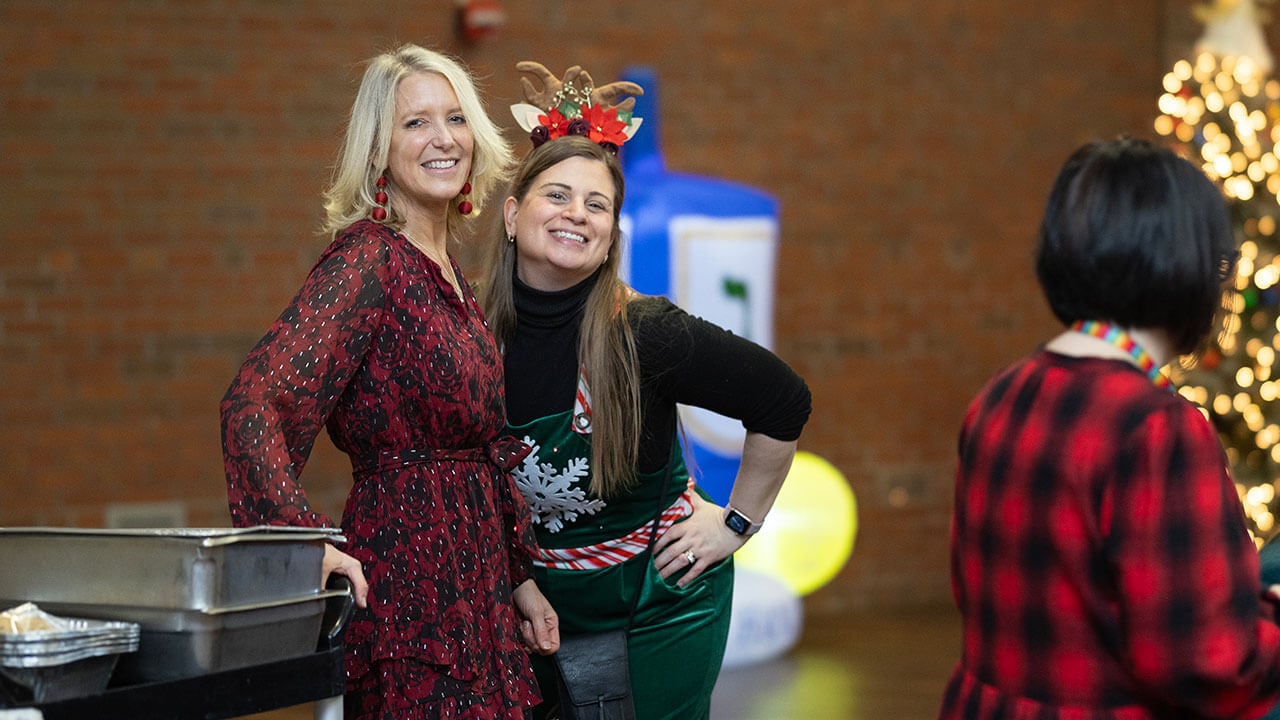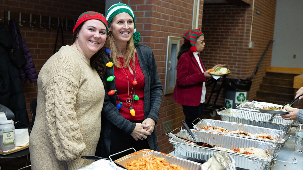 In addition to Zemba, Natale and five Quinnipiac event staff “elves” helped serve 100 Hamden seniors a festive holiday luncheon and distribute the gift bags on December 8 at Hamden’s Thornton Wilder Hall.