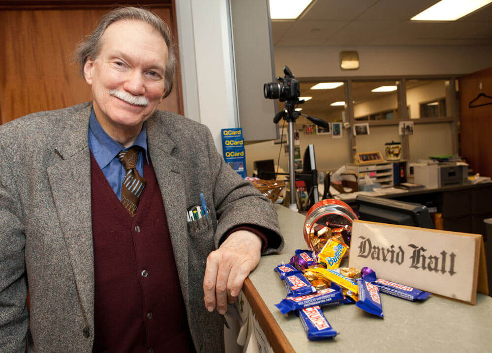 David Hall ’70 began his Quinnipiac experience on the same day as the then Quinnipiac College opened its Mount Carmel Campus in October 1966. Over the next half century (sans the two years he went to Boston University for his master’s), he has distributed hundreds of thousands of QCards and more than 250,000 pieces of candy — enough, in fact, to extend from the front door of the Arnold Bernhard Library to the front door of the Center for Medicine, Nursing and Health Sciences on our North Haven Campus.