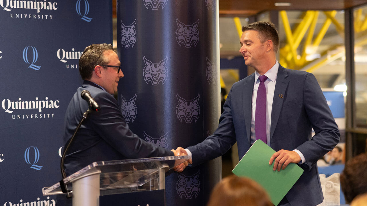 “The relationships I’ve built here at Quinnipiac I hold close to my heart and will last a lifetime,” said Grgurich. “Quinnipiac is where I met my wife and started my family. Quinnipiac is family to me. And if I have helped grow this family in any way, then it makes me proud to receive this award.”