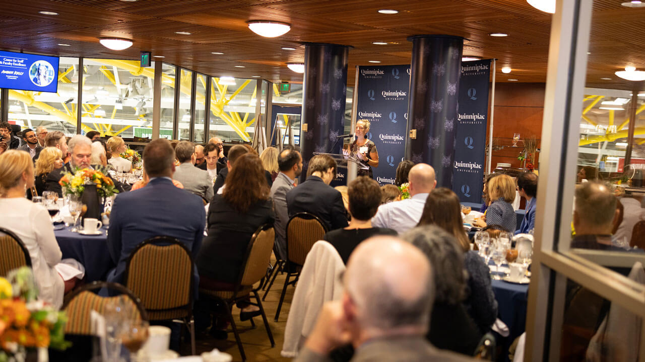 The festive evening in the University Club at the M&T Bank Arena on Quinnipiac’s York Hill Campus celebrated the honorees for their innovation and commitment to students and colleagues and for their critical role in advancing Quinnipiac in becoming the University of the Future.