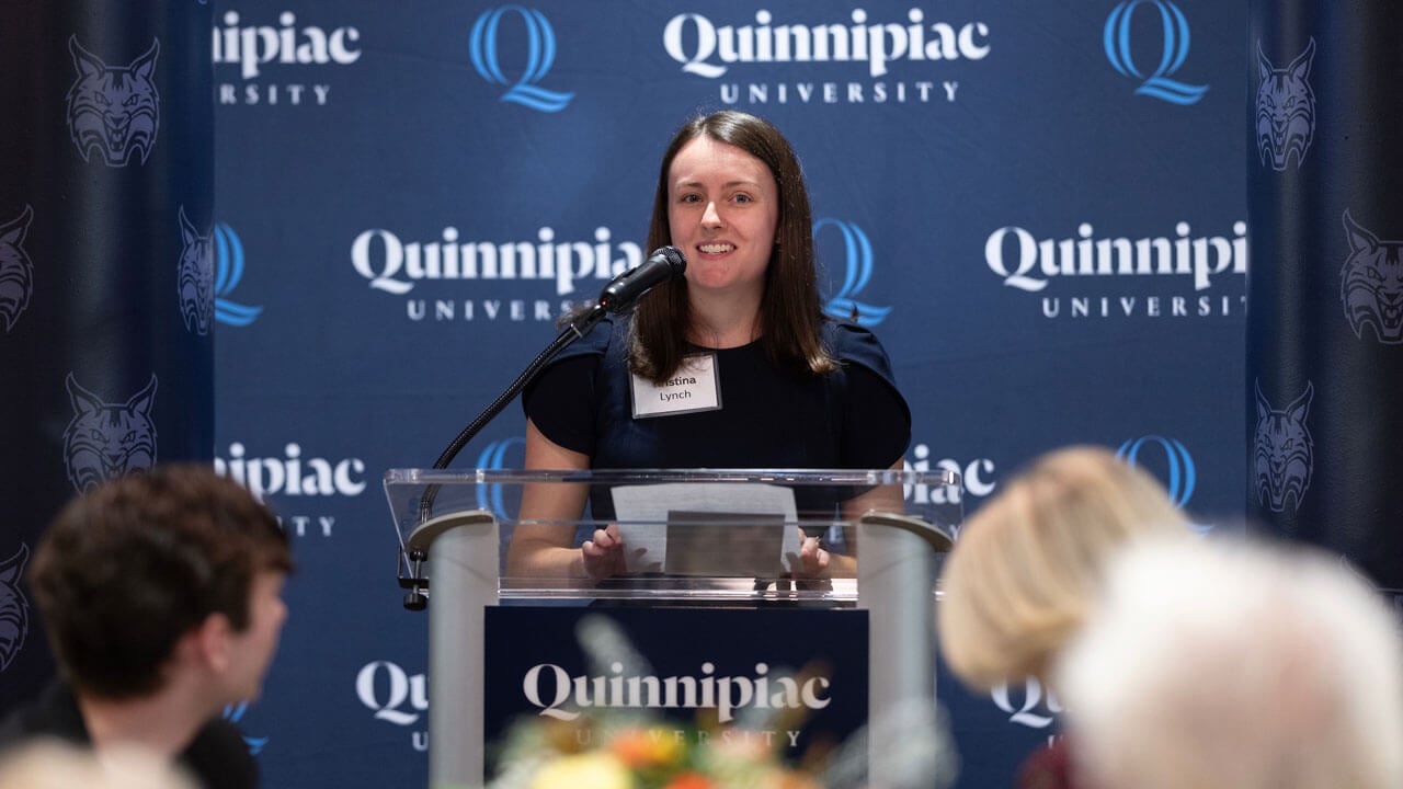 Luersen thanked all those in her life who brought her to teach at Quinnipiac, where she is surrounded by peers who encourage and inspire her and share a commitment to students and success.