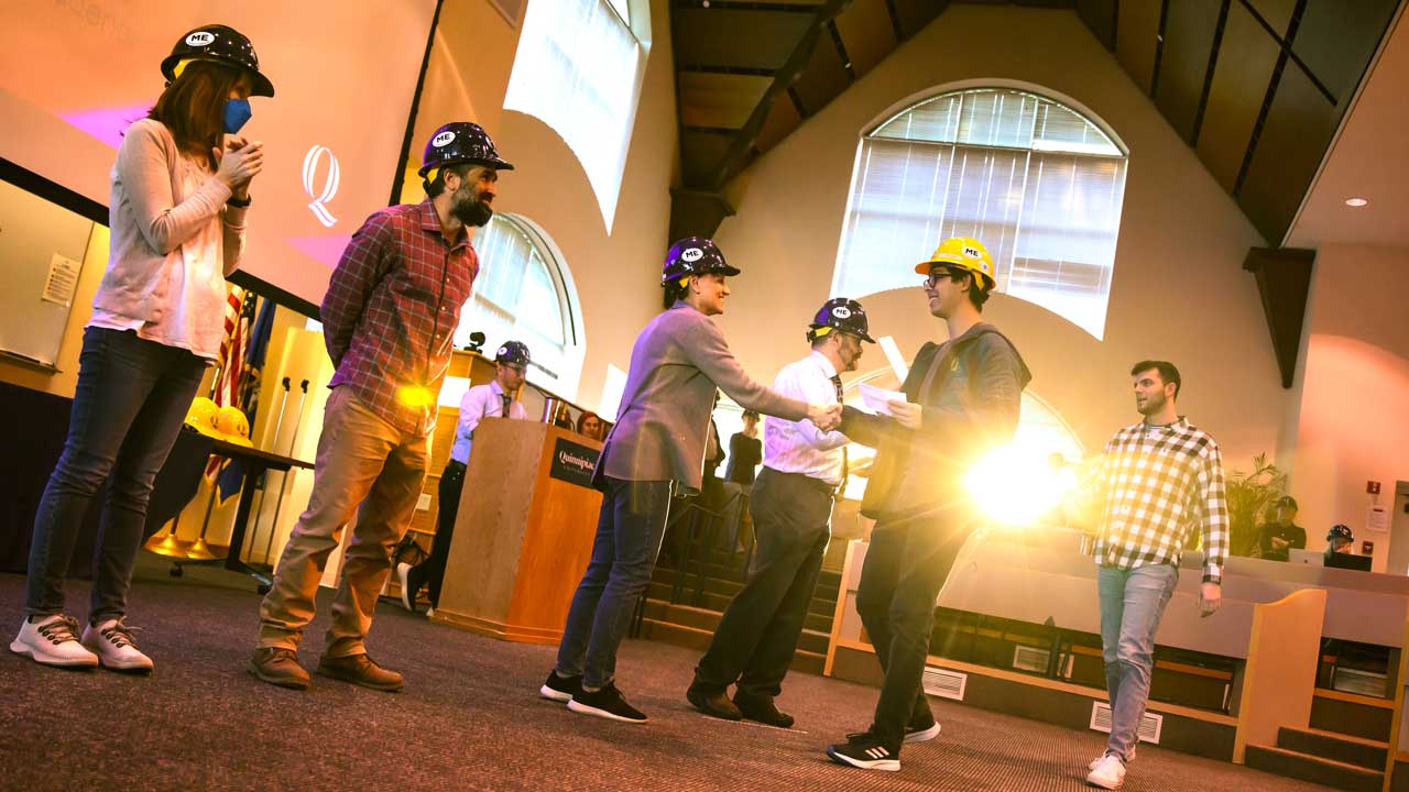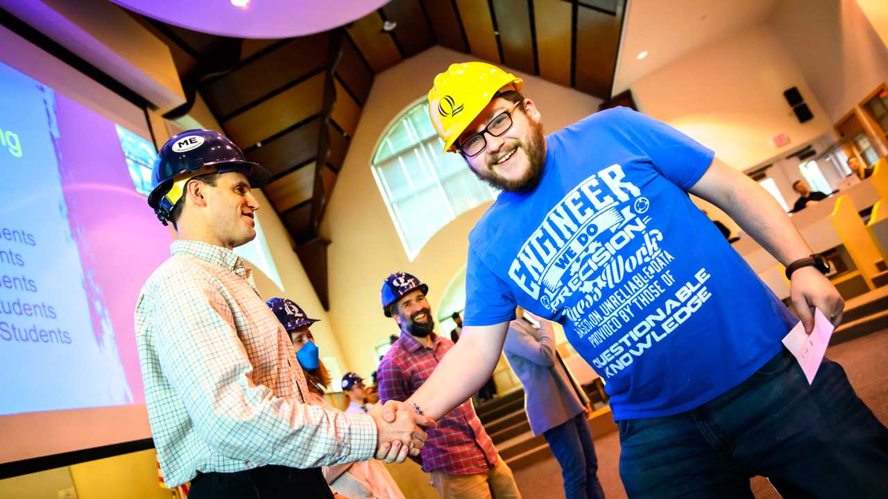 “The hard hat is a traditional symbol of an engineer – and even if you never wear one in your working career, it will forever be a symbol of your membership in our School of Computing and Engineering,” said Kocak.