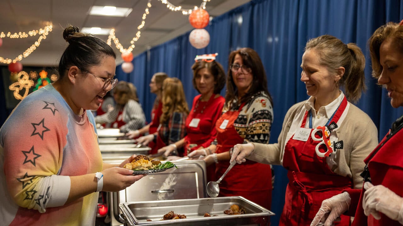 Gwam enjoyed the holiday dinner with a newly-met peer, first-year medical student James Jaramillo, MD ’27. Jaramillo said he heard about the event from faculty in his program.