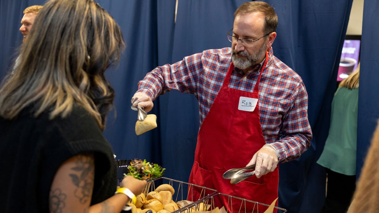 Seth Freeman, JD ’26, said the offer of enjoying the holiday dinner in the building just a few hours after his classes ended created the incentive to stay and do some more studying.