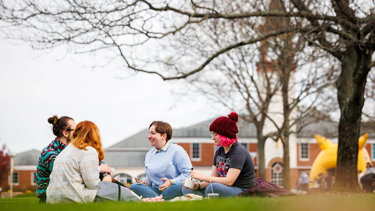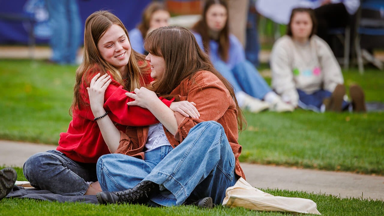 Ashlyn Manuel, ’24 and Cali Lonardelli, ’24, brought blankets to set up on the Quad for The Peach Tree Rascals concert.