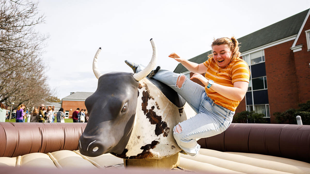 The annual free event for students featured tempting treats from food trucks and plenty of ways to warm up in the cooling fall air, from a mechanical bull ride and life-sized Hungry, Hungry Hippos game, to a spread of lawn games and table activities. The day was capped by a live concert featuring The Peach Tree Rascals on the outdoor stage.