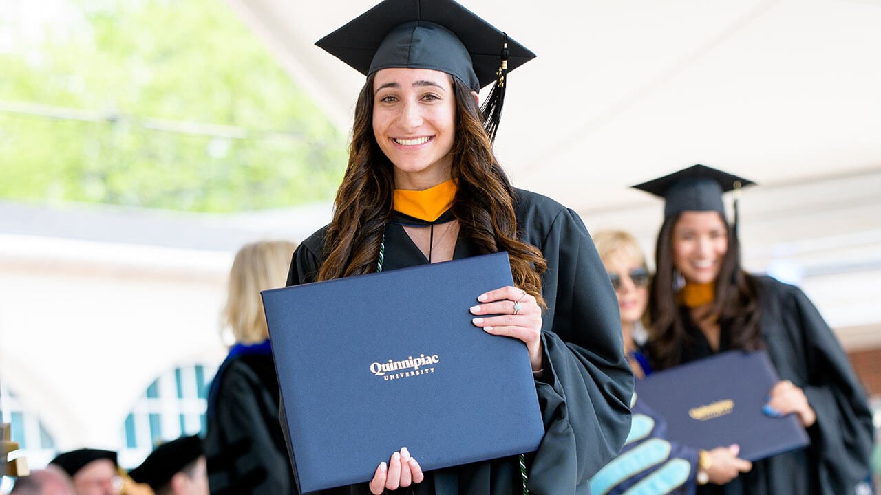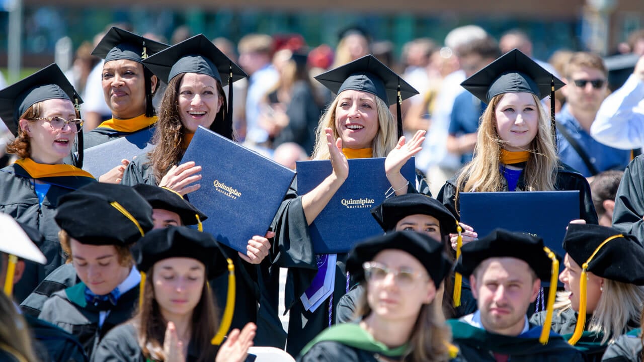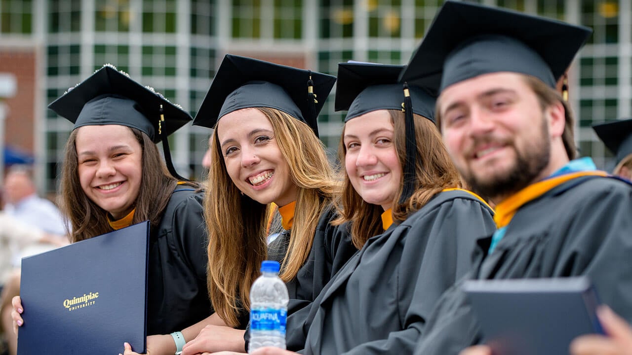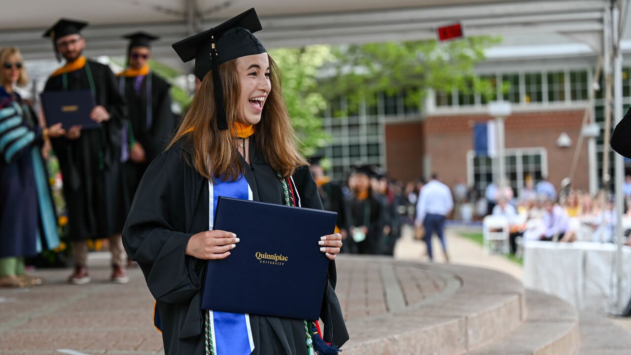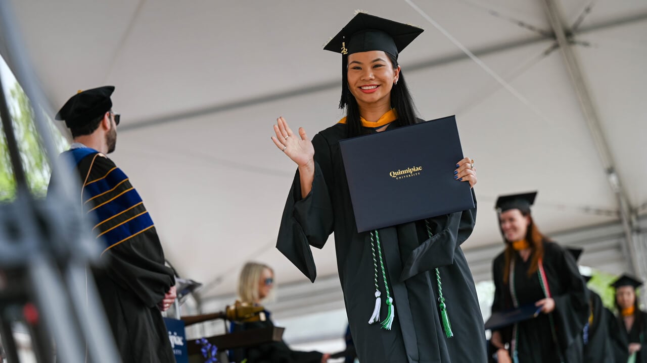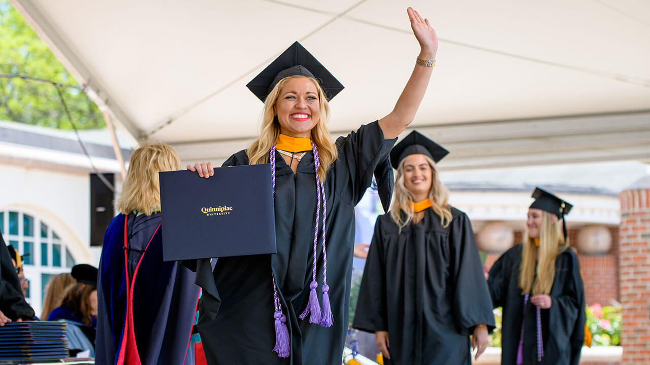 “I invite you to move your tassel to the left of your cap,” said Doherty. “This simple act signifies your transition from student to alumnus, and the continuation of your unique, meaningful and lifelong relationship with Quinnipiac. I’m especially pleased to have you all as fellow alumni. You are a Bobcat for Life. Congratulations!”