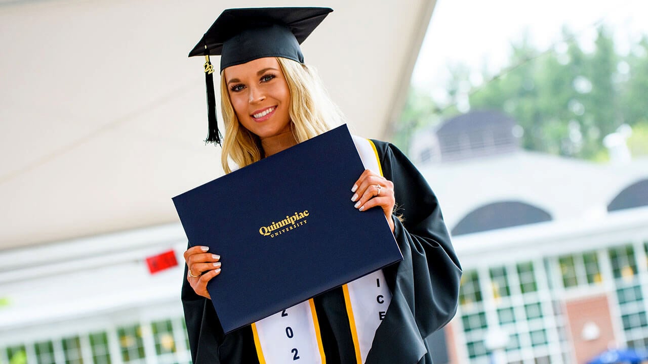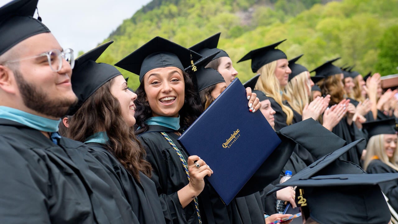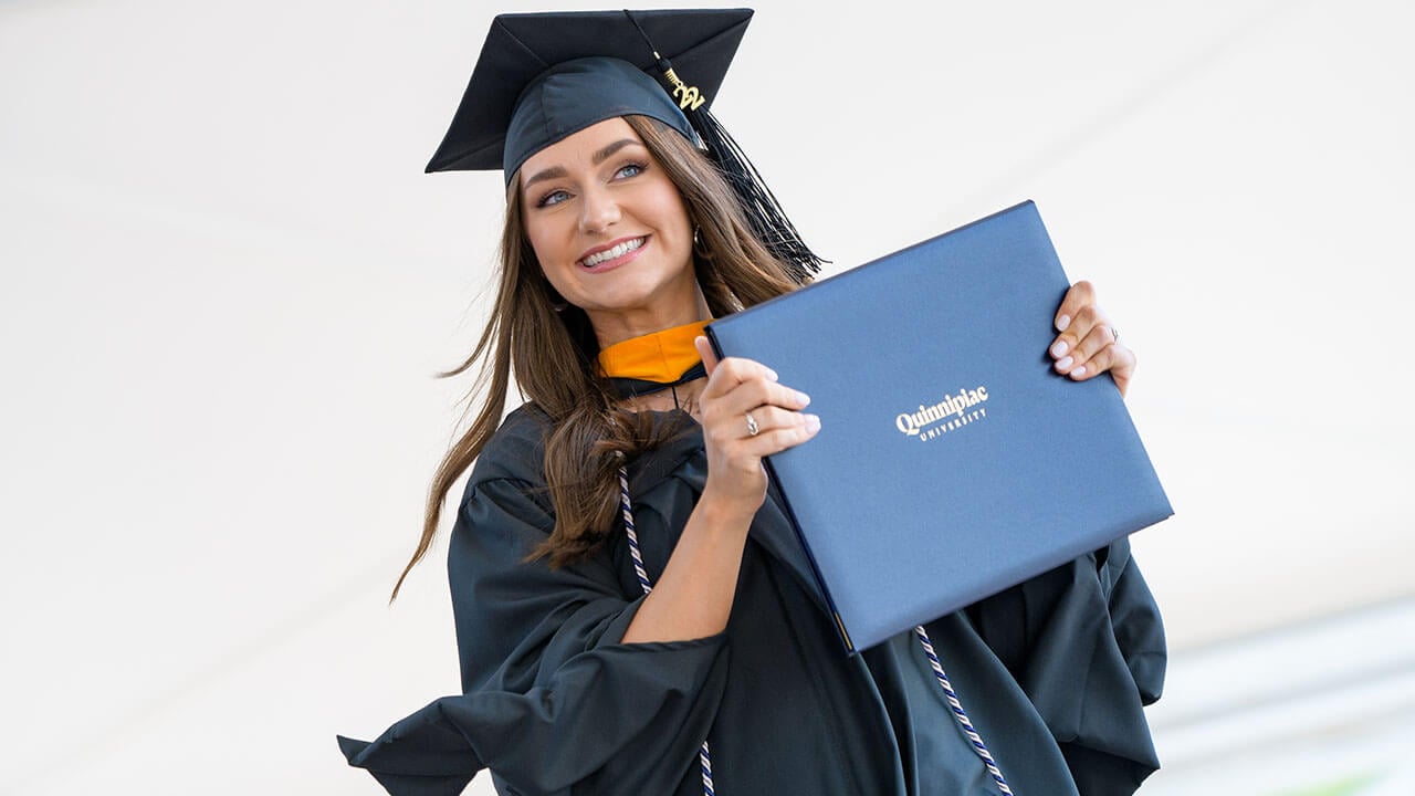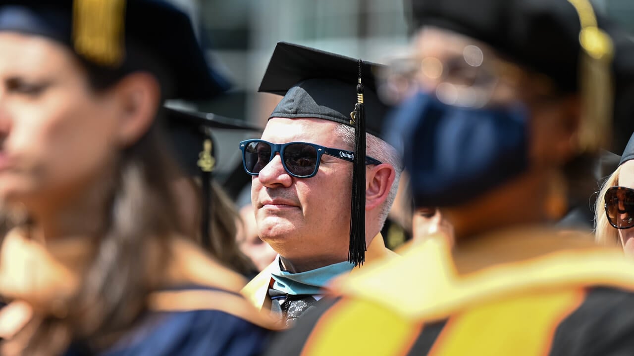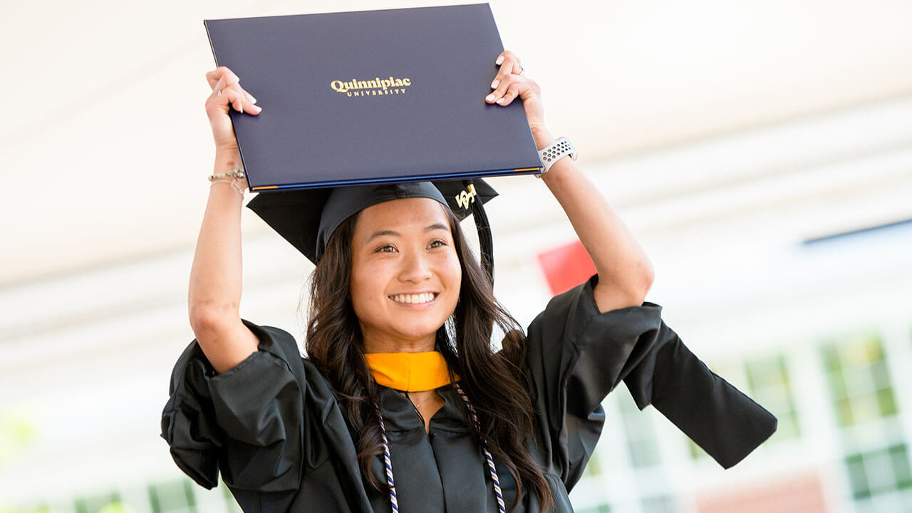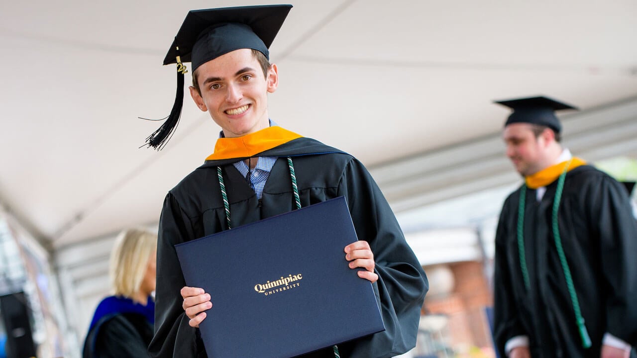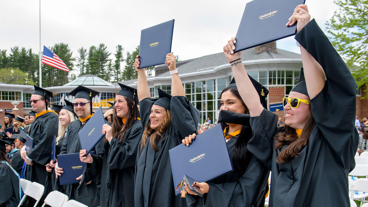 “I invite you to move your tassel to the left of your cap,” said Doherty. “This simple act signifies your transition from student to alumnus, and the continuation of your unique, meaningful and lifelong relationship with Quinnipiac. I’m especially pleased to have you all as fellow alumni. You are a Bobcat for Life. Congratulations!”