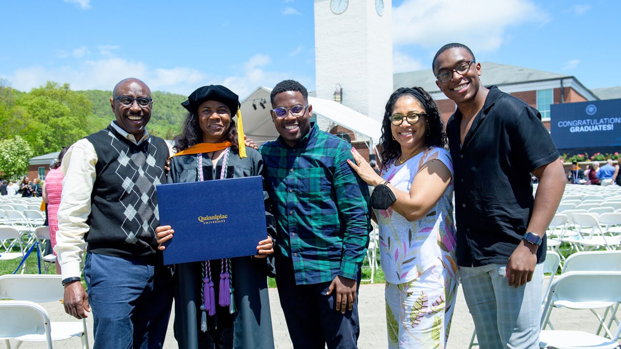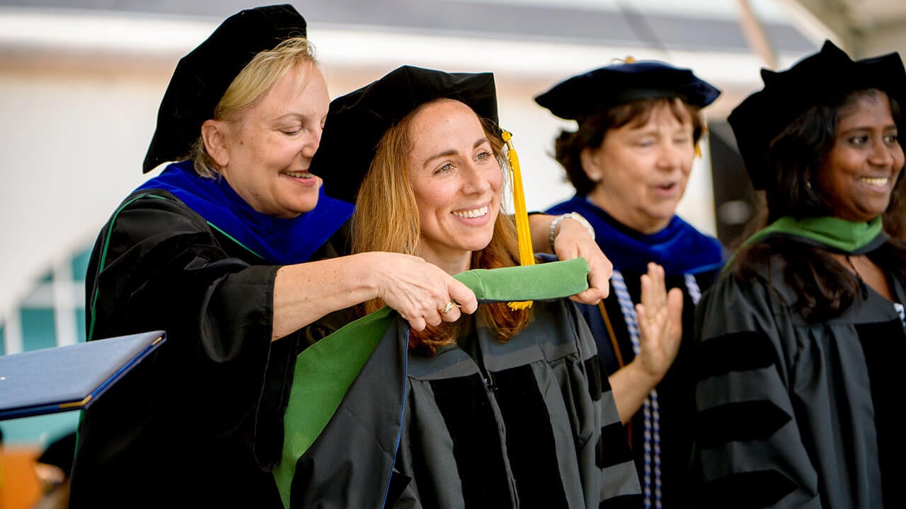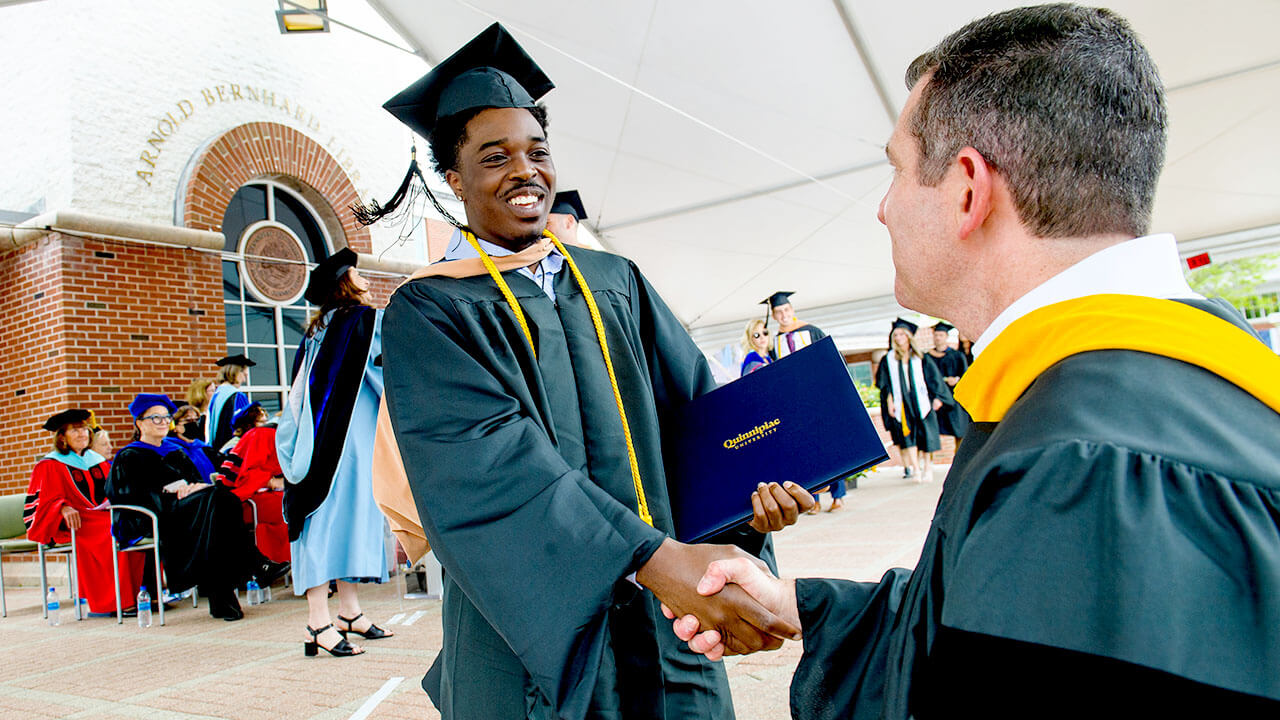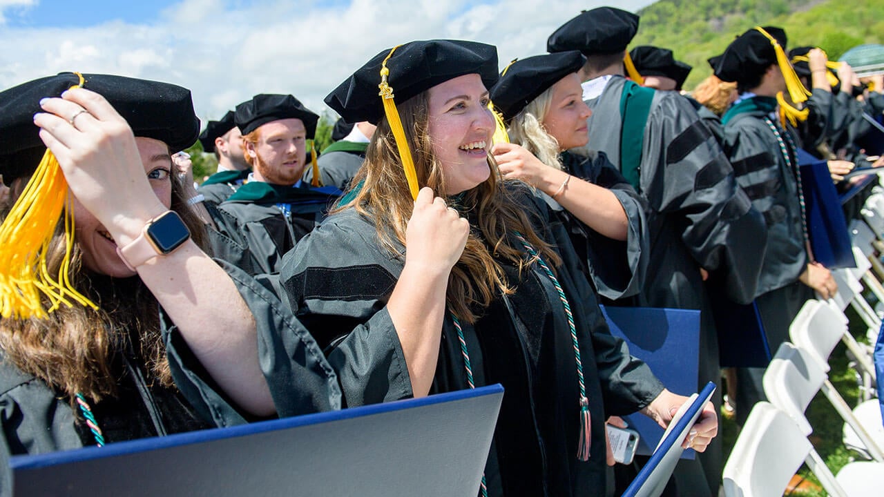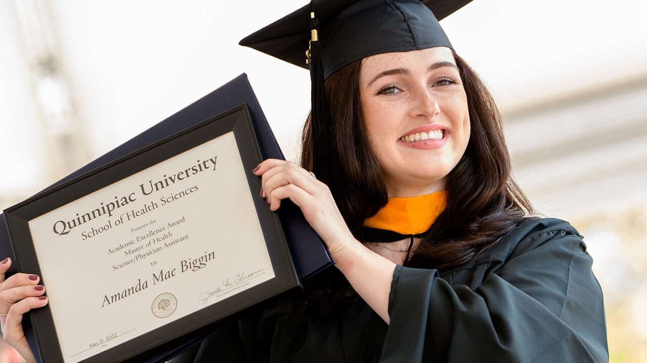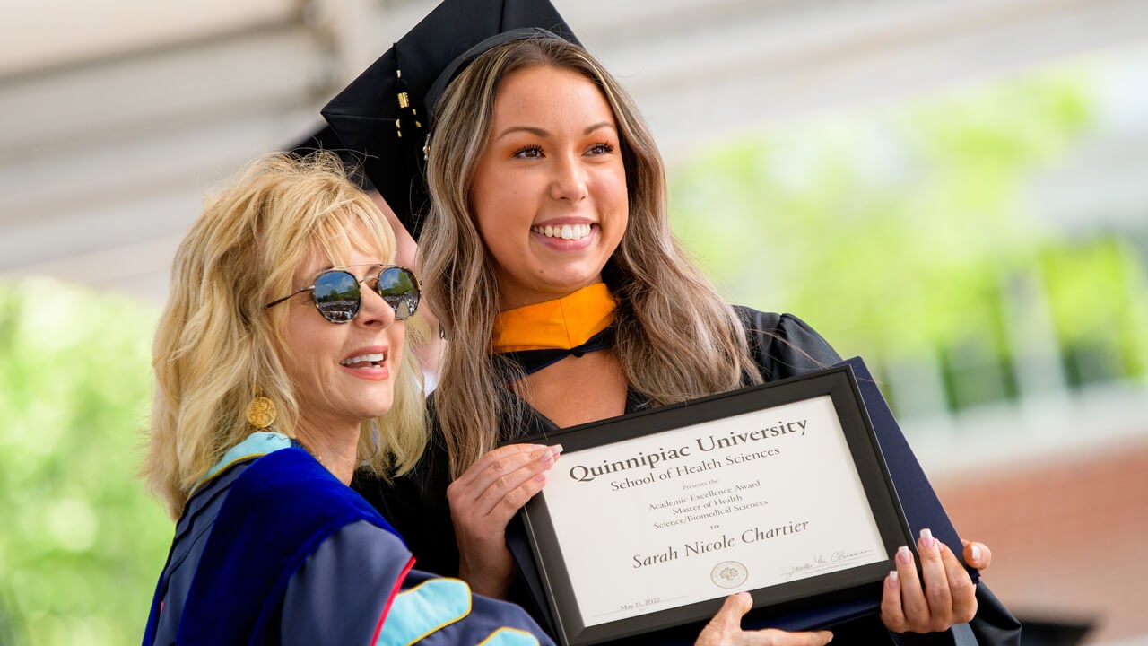 “I invite you to move your tassel to the left of your cap,” said Doherty. “This simple act signifies your transition from student to alumnus, and the continuation of your unique, meaningful and lifelong relationship with Quinnipiac. I’m especially pleased to have you all as fellow alumni. You are a Bobcat for Life. Congratulations!”