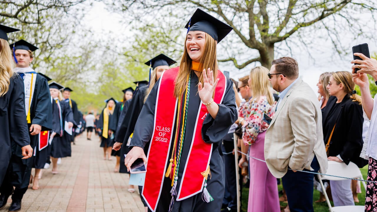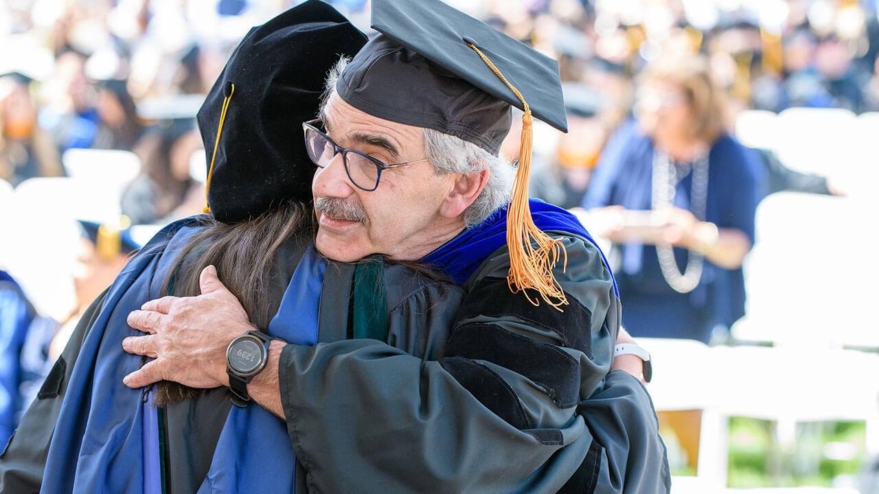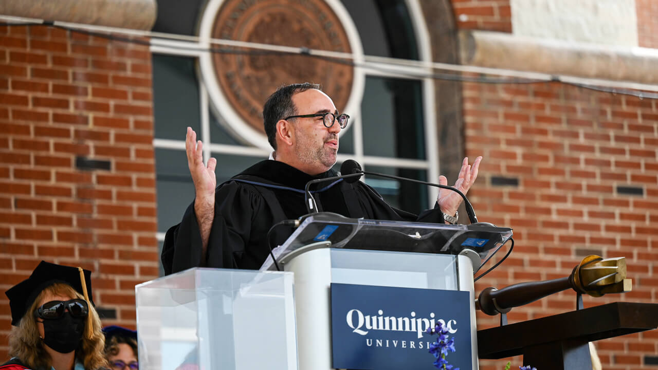 At the conclusion of the ceremony, Alumni Association Board President Jeanna Doherty ’94 extended an official welcome to the Class of 2022 into the Bobcat alumni community of more than 60,000 worldwide, with a reminder that a Quinnipiac education is a relationship that lasts a lifetime.