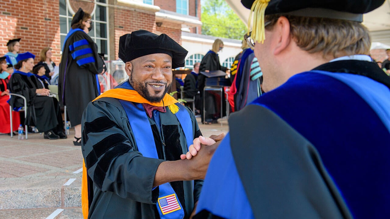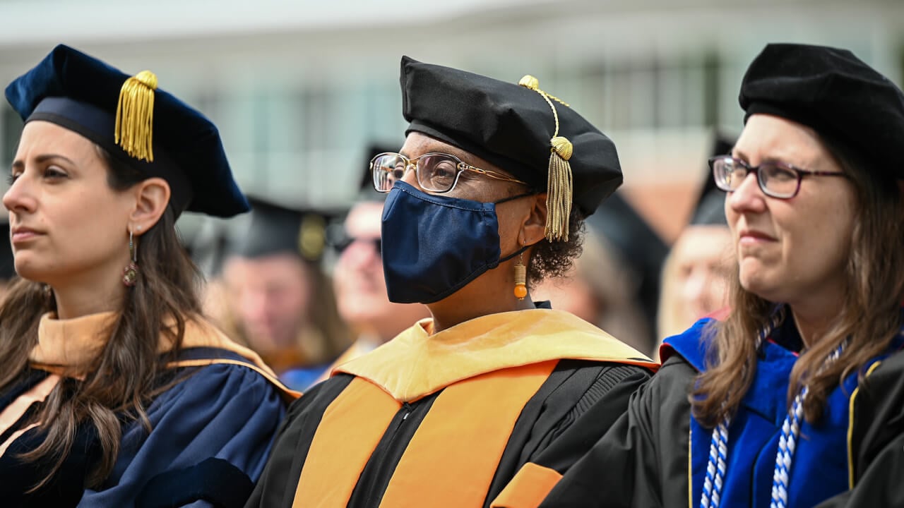 “As you endured a pandemic while continuing your graduate studies, you’ve become quite familiar with pivoting on a dime, with tremendous resiliency, adapting to new models of learning and technology, acting with consideration of the whole community, and appreciating the importance of relationships and human-to-human connections,” said Olian. “And now, you’ll embark upon new ambitions and lead the way in defining what can be, as you shape the world.”