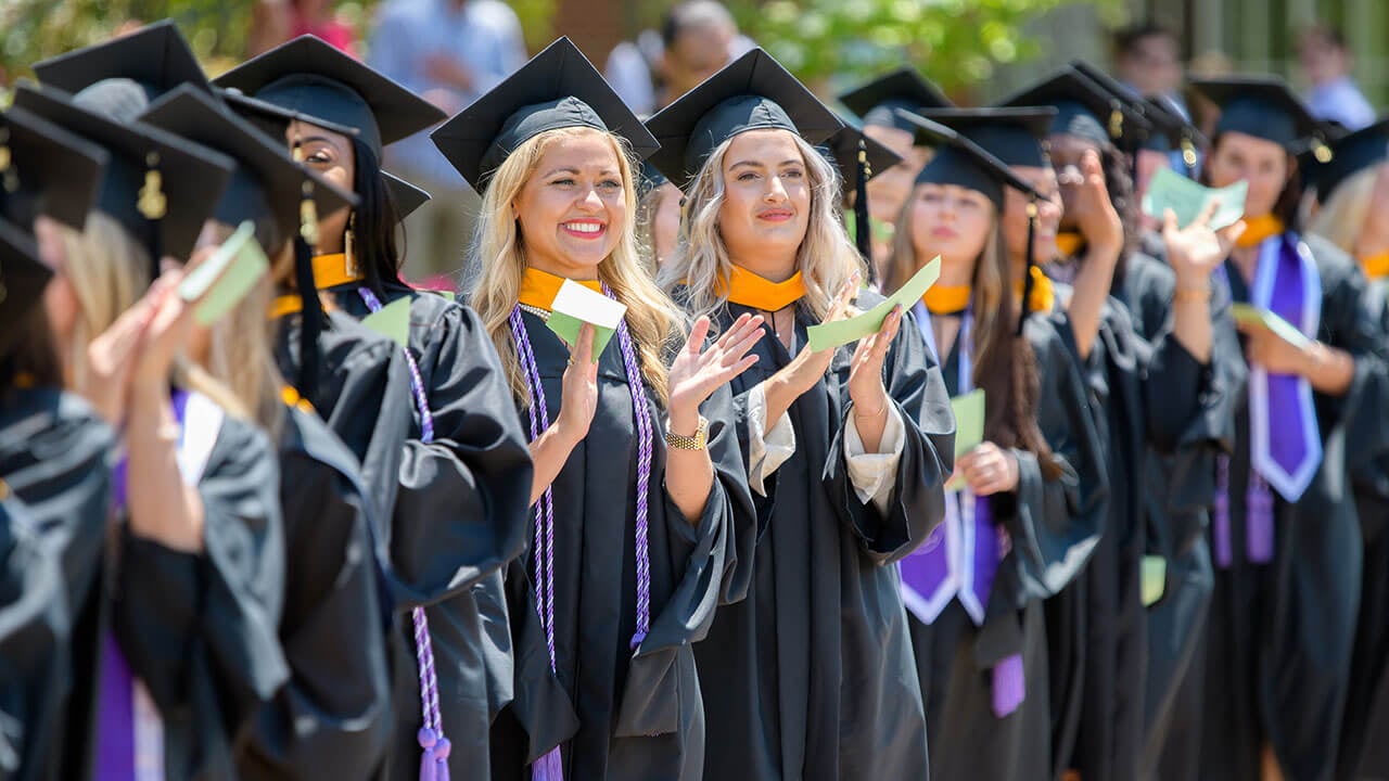 In total, degrees were conferred on 1,187 graduates — 366 from the School of Health Sciences, 344 from the School of Business, 197 from the School of Education, 112 from the School of Communications, 118 from the School of Nursing, 35 from the College of Arts and Sciences, and 15 from the School of Computing and Engineering.