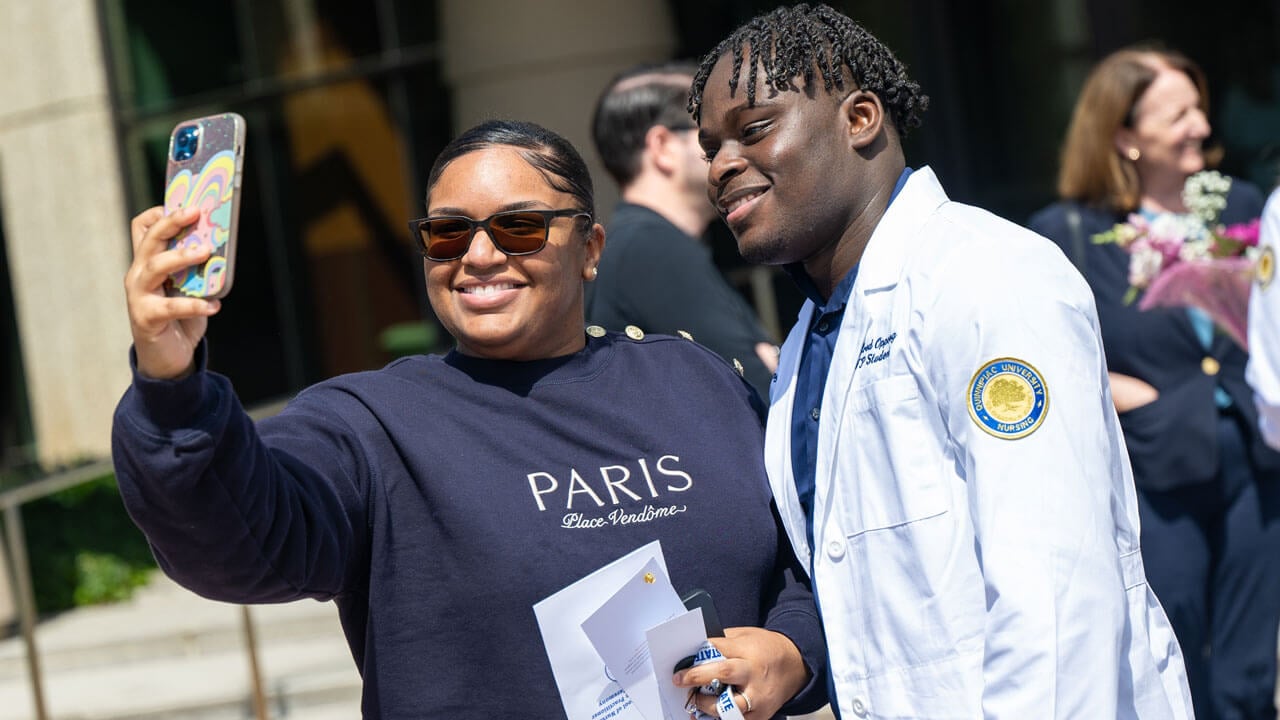 “We have a great group of 47 students that are here to get their white coats today and be the first-ever at Quinnipiac to do so,” said Slater, days before the start of National Nurses Week. “I’m so excited that we also have support systems that are here with you to enjoy this white coat ceremony. I see a tremendous group of friends and family that are here to cheer you on as you get your white coat.”
