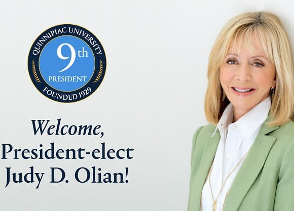 “Quinnipiac sought a visionary leader energized by the opportunity of leading our university at a pivotal moment in its history. That leader is Judy Olian,” said Weldon, who also served as chairman of the search committee.