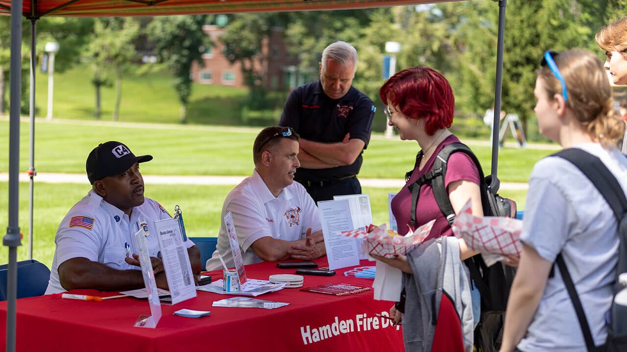 Members of the Hamden Fire Department were also seeking to connect with Quinnipiac students at the event, for several reasons, said Captain Julio Lopes, the department’s training officer.