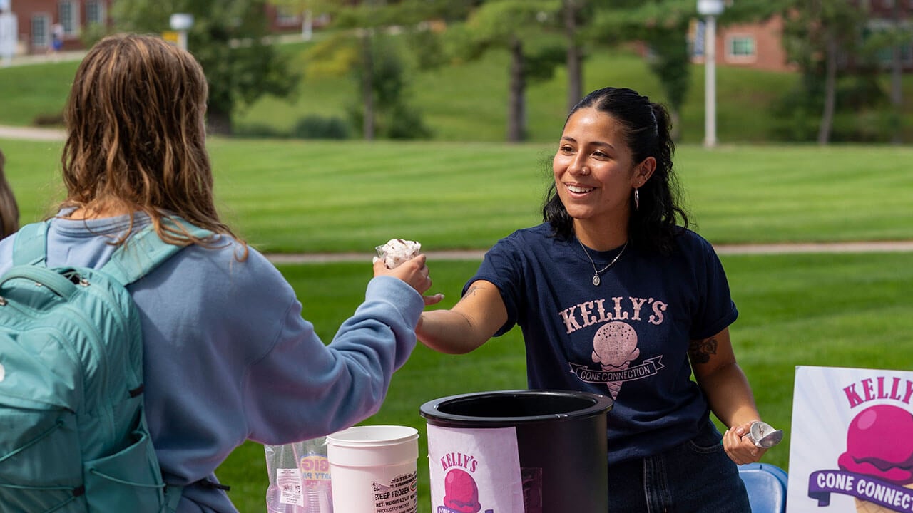 Amber Unger '27, spotted Ivey’s Hartford HealthCare display from the window of her biology classroom and came down to the Quad to learn more after class ended.