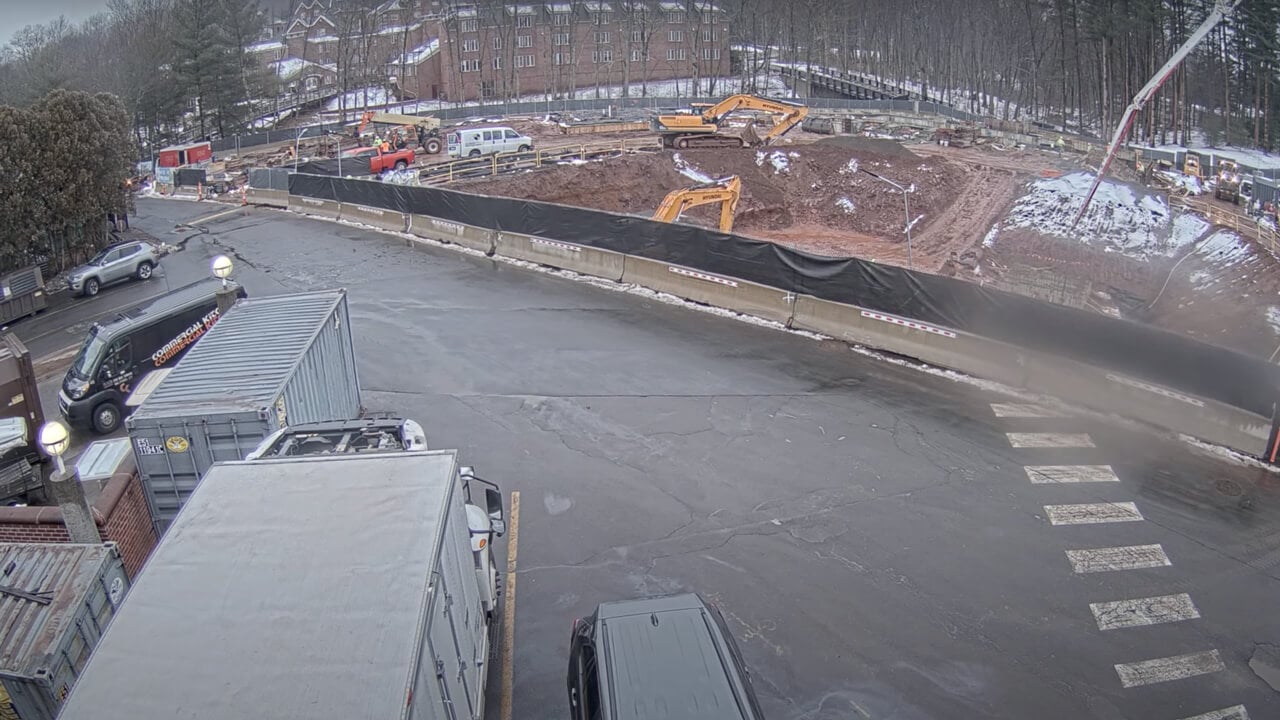 Concrete footings and foundations at the School of Business and academic buildings are being installed and the School of Business structural steel is up to the third floor on the south wing.