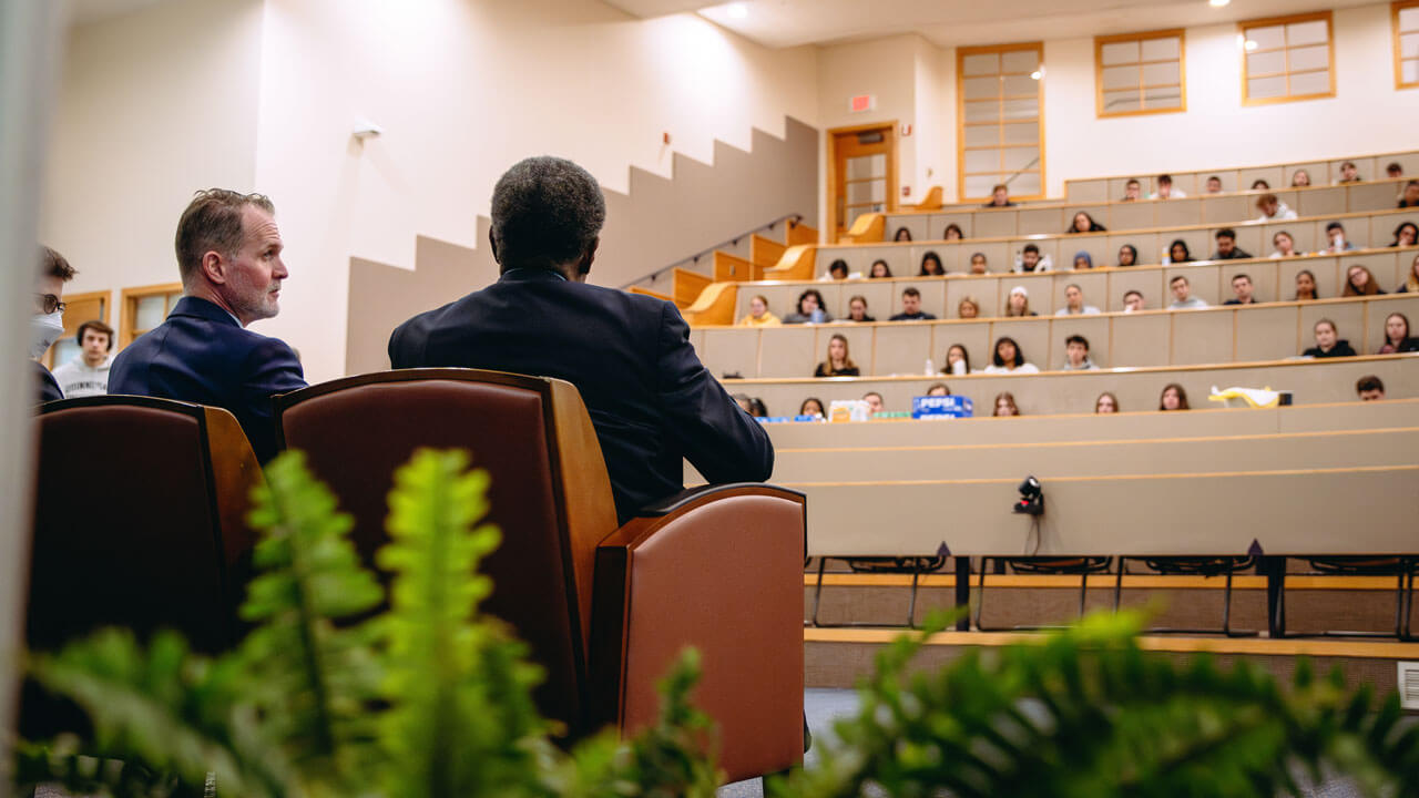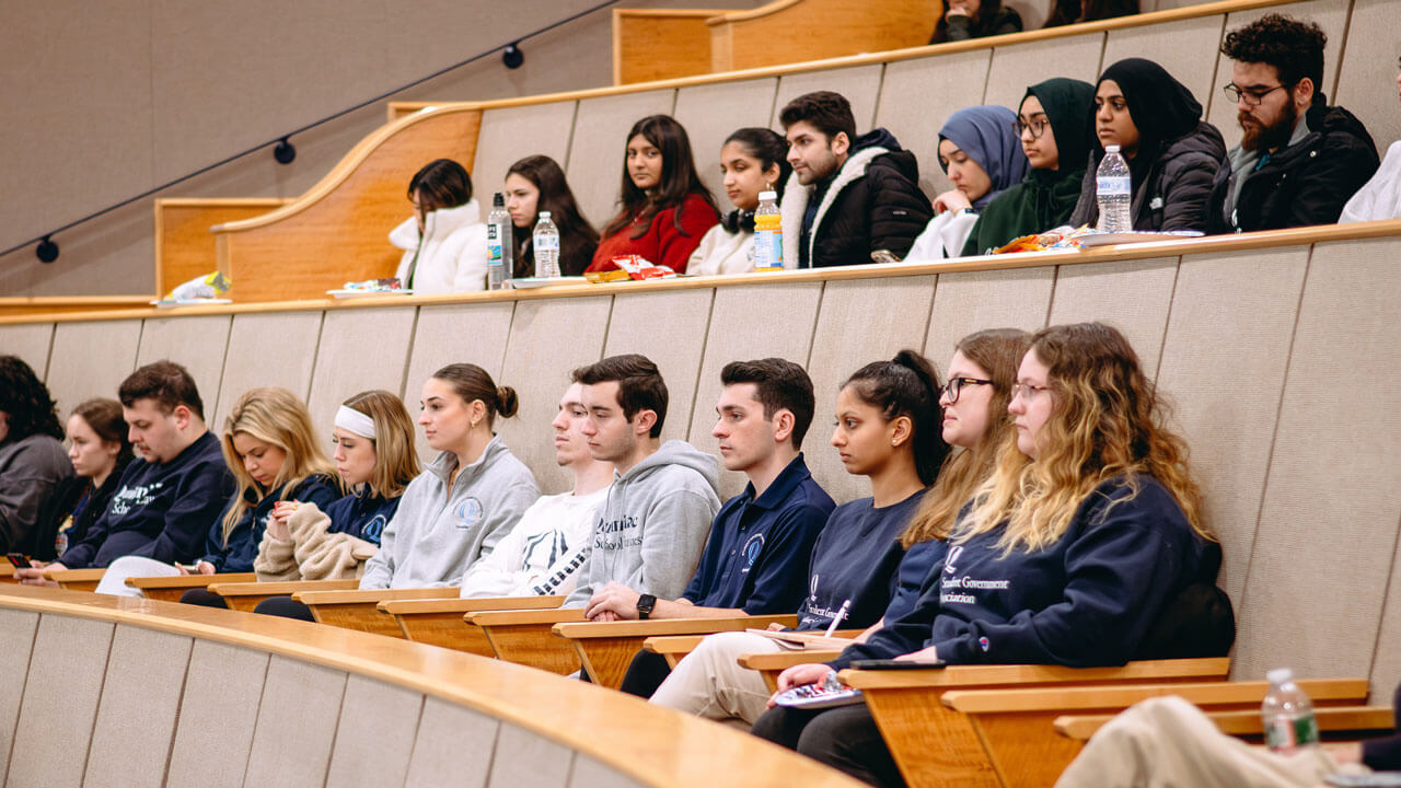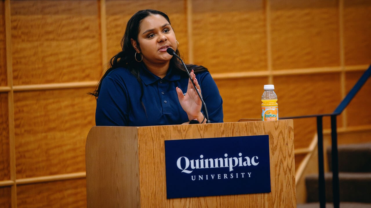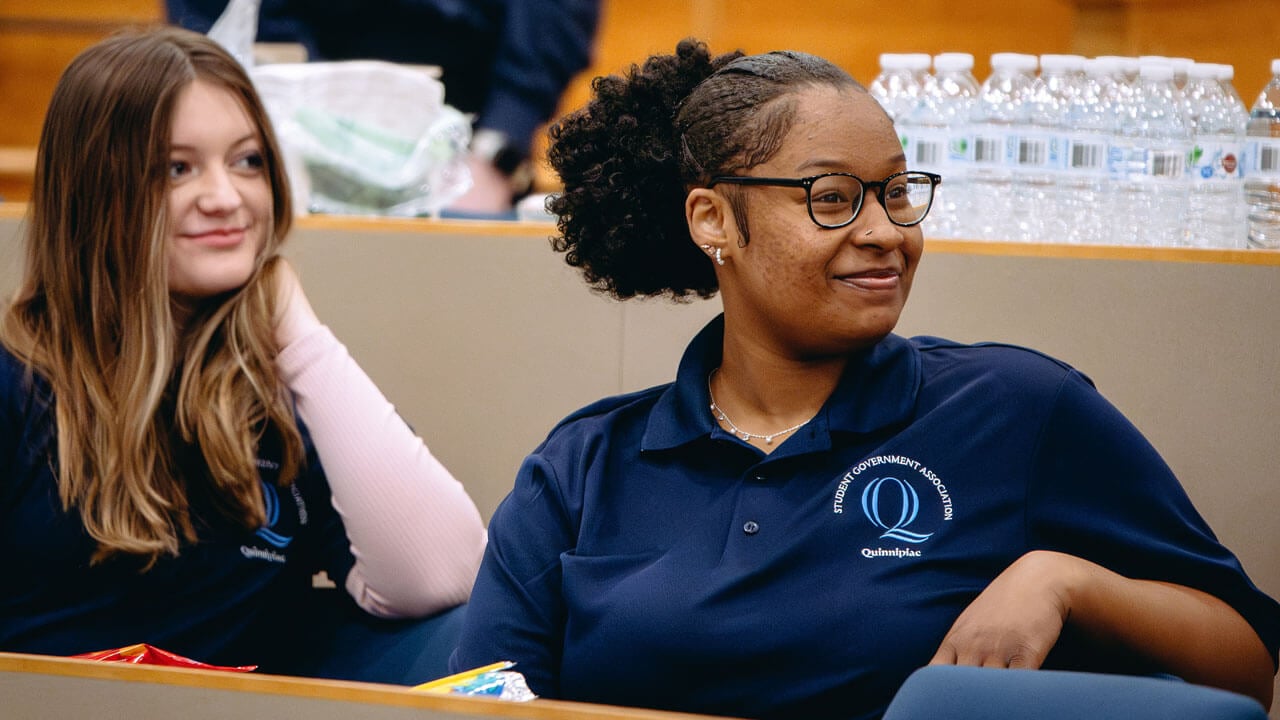Throughout the conversation, insightful questions underscored the compassion and commitment of Quinnipiac students for each other and their dedication to maintaining an inclusive campus culture, while also advocating for continued leadership in local and global issues. Topics ranged from student input on new campus spaces to resources for underrepresented communities on campus.