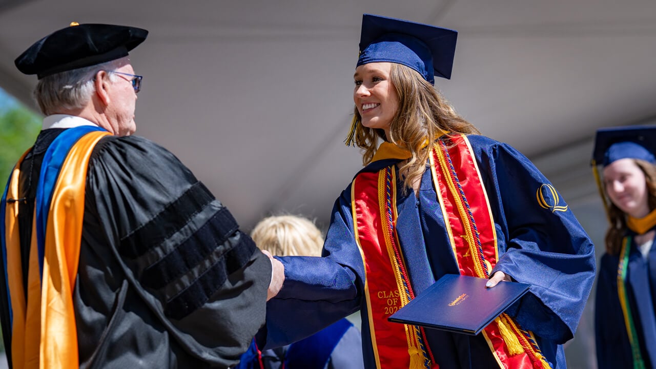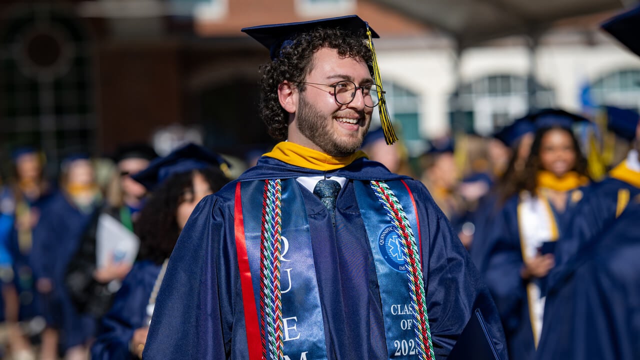 Over the course of your Quinnipiac journey, you’ve been guided by outstanding faculty and dedicated staff who are proud to stand beside you today. All that you’ve learned — and the many ways in which you’ve grown — will serve you well. In addition, you’ve gained new understanding and perspectives from one another during this profoundly transformative time in your lives. Stay connected to your Bobcat family, visit us often, and draw on the friendships and mentor relationships you’ve formed.