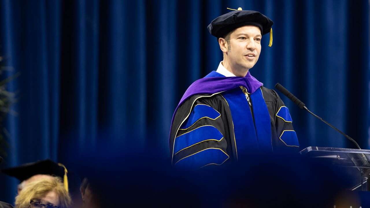 Making his first Commencement address as dean of the School of Law, Brian Gallini thanked the graduates for welcoming him into the Quinnipiac law community.