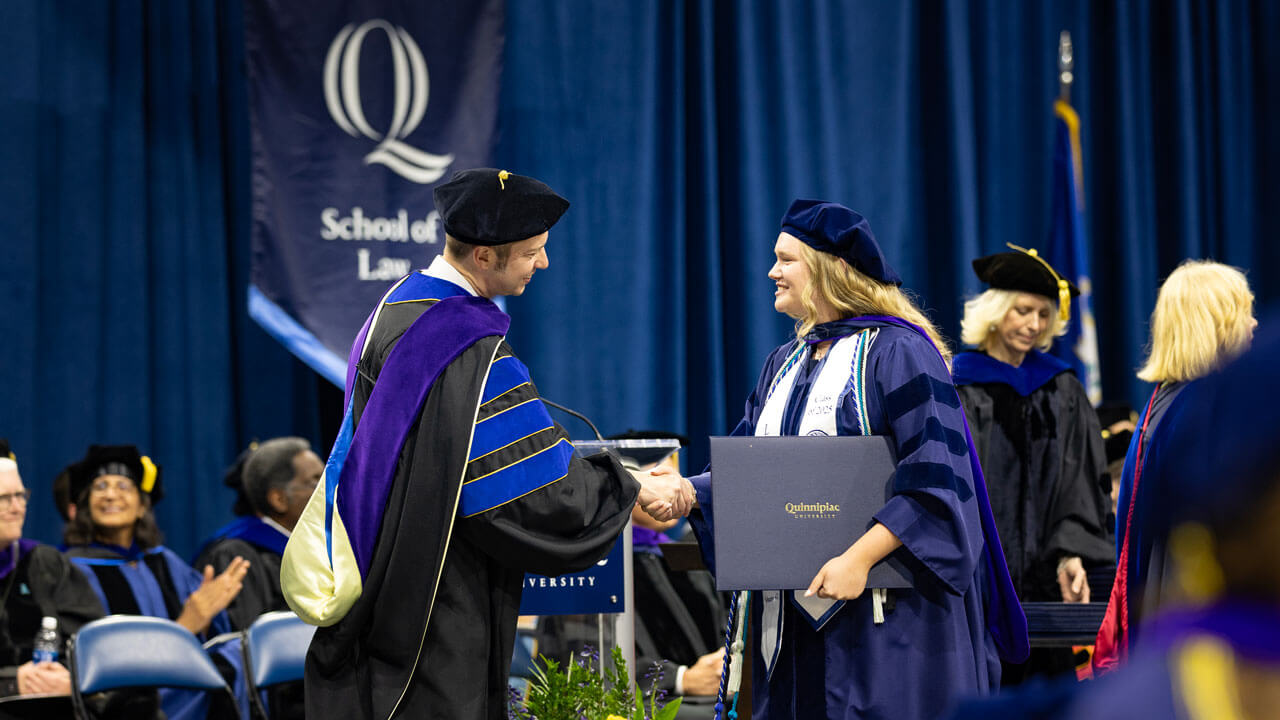 On behalf of everyone at Quinnipiac Law, I wish you fulfilling careers and lives of purpose and impact. We are forever connected through this shared experience and will always be in your corner should you need you ever need your Quinnipiac Law family.