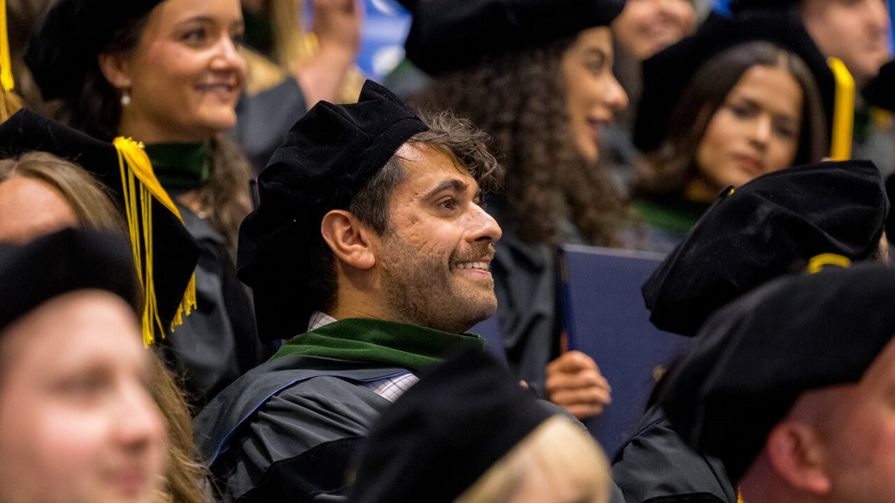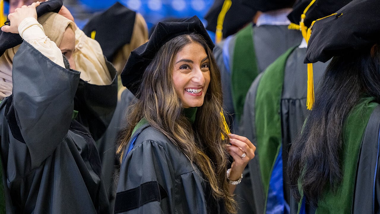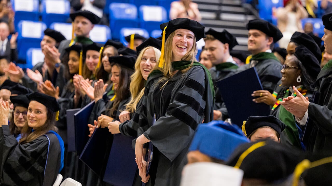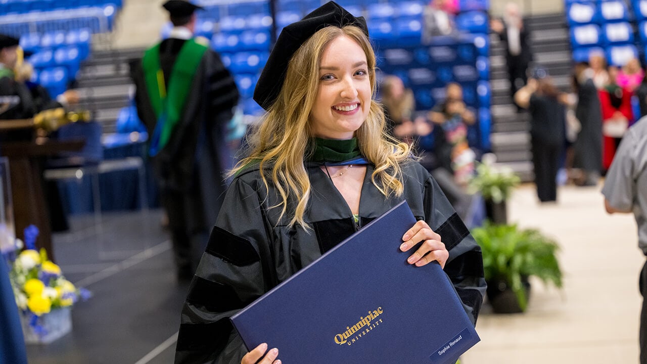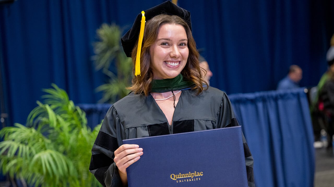 “I invite you to move your tassel to the left of your cap,” said Doherty. “This simple act signifies your transition from student to alumnus, and the continuation of your unique, meaningful and lifelong relationship with Quinnipiac. I’m especially pleased to have you all as fellow alumni. You are a Bobcat for Life.”