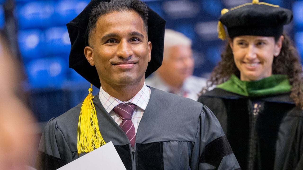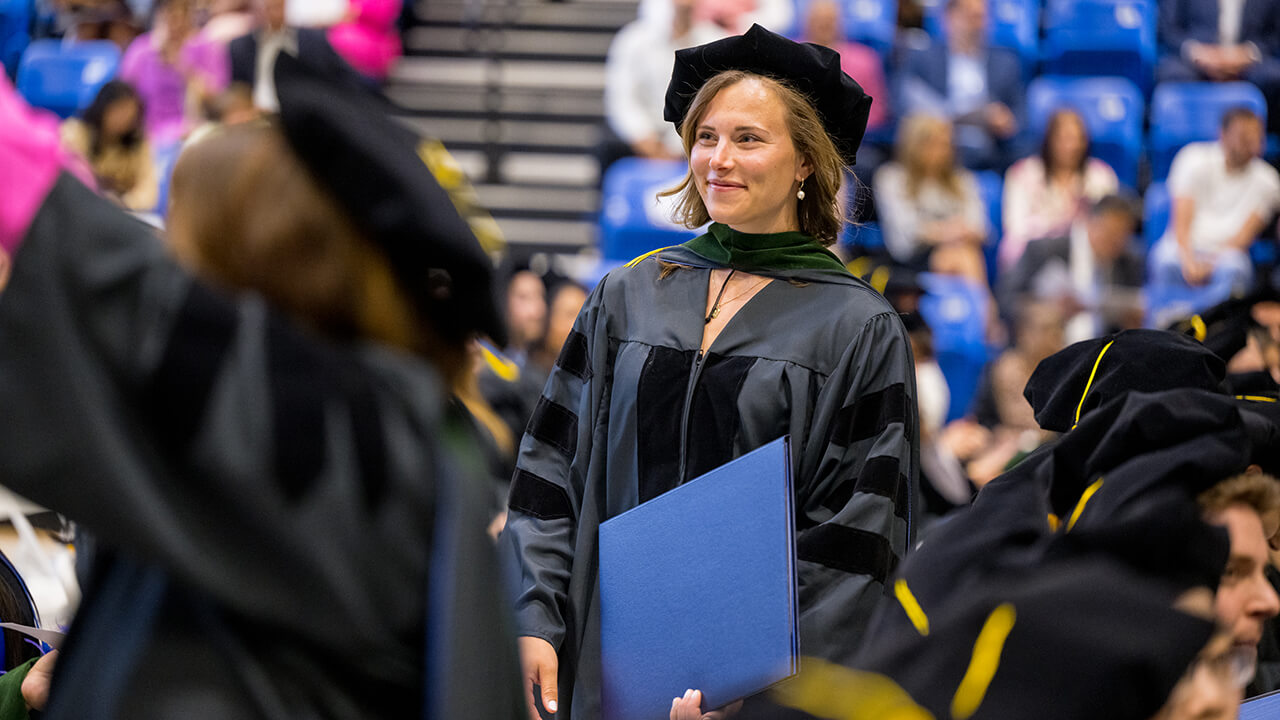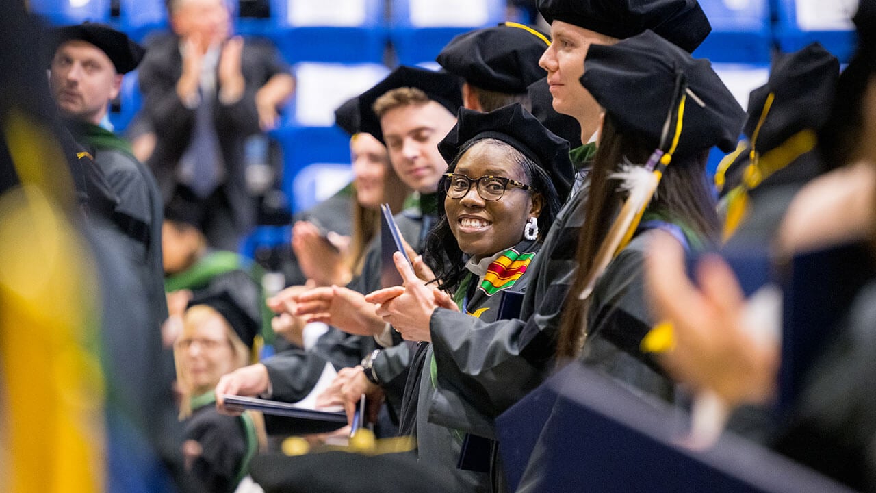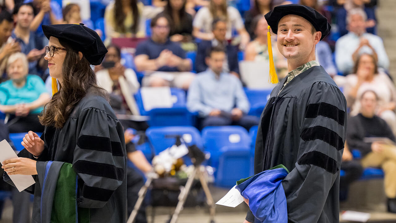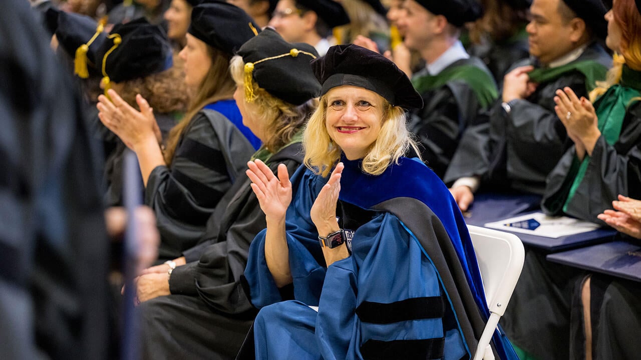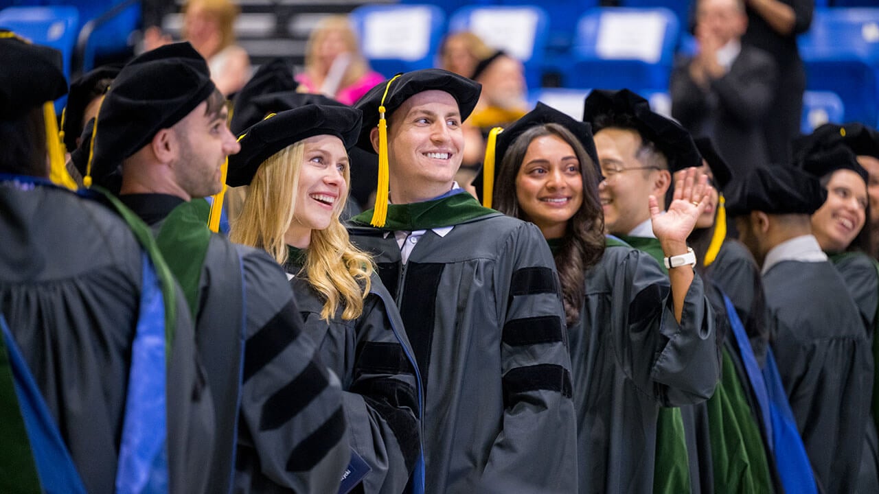 “I invite you to move your tassel to the left of your cap,” said Doherty. “This simple act signifies your transition from student to alumnus, and the continuation of your unique, meaningful and lifelong relationship with Quinnipiac. I’m especially pleased to have you all as fellow alumni. You are a Bobcat for Life.”