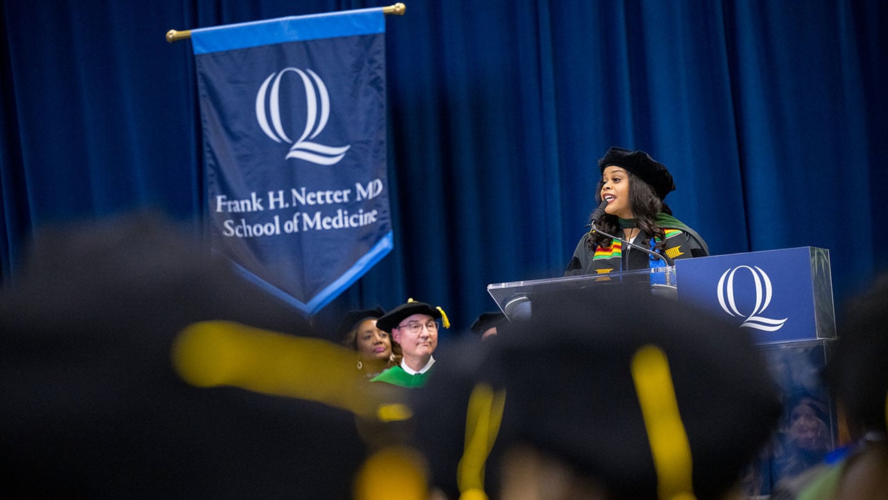 “As a QU Netter graduate you possess uniquely humanistic values. Here, you are immersed in a collaborative and interprofessional model that positions you to offer holistic care with compassion and keen attention to a patient’s physical, mental and emotional needs,” said Olian. “As physicians, you will touch lives in profound and transformative ways. You will identify problems, and solutions, that others often do not see. And you will find and feel the humanity in illness, not just for the patient, but for those they love, and who love them.”