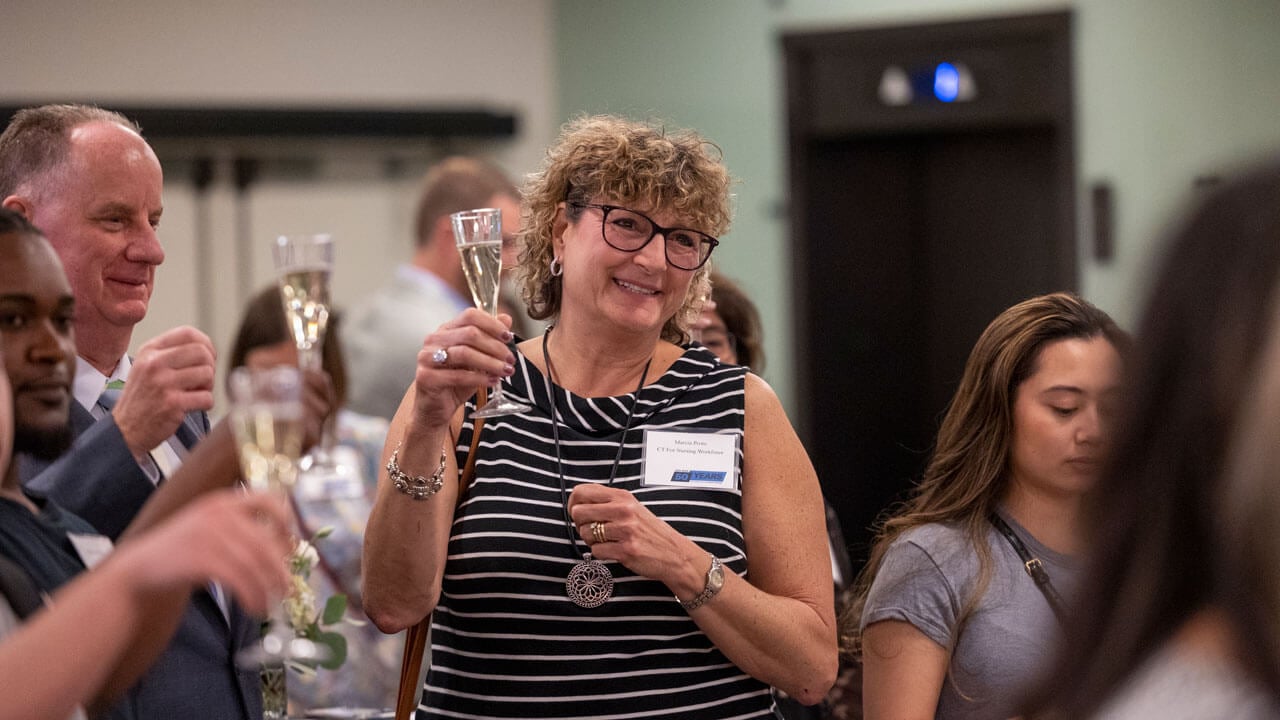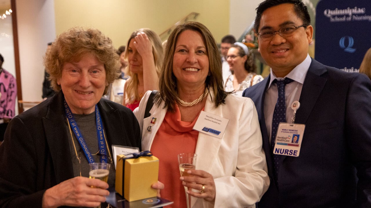 For Leona Konieczny ’74, the evening was an opportunity to reconnect with her alma mater, visit with friends and celebrate the nursing profession as a whole. After graduating from Quinnipiac, Konieczny spent the first 20 years of her career in critical care before switching to gerontology and earning a doctorate in 2013. Today, Konieczny is director of graduate studies in the nursing at the University of Hartford.