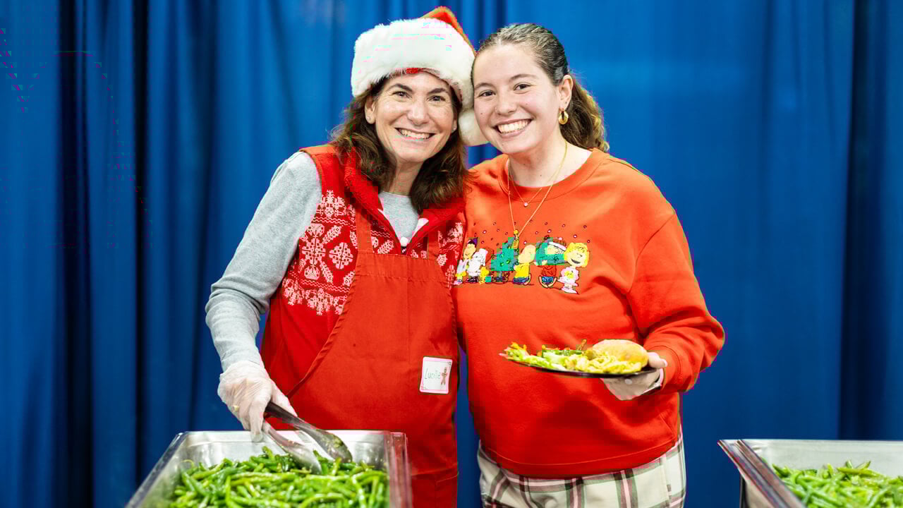 A festive group of 70 faculty and staff donned fun seasonal attire and some showy holiday headgear to serve students a memorable holiday meal and decadent desserts. The big event transformed the North Haven Campus dining hall into a holiday venue with music, decorations and a celebratory glass of wine for 21-and-over graduate students.