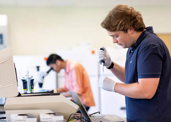 In our cutting-edge labs and facilities, you’ll learn to analyze genes using modern instrumentation such as thermal cyclers, and examine biological and chemical material with a variety of sophisticated microscopes and other lab technology. Our faculty members come from a diverse range of professional backgrounds and offer a blend of traditional lectures and hands-on lab courses. You also will benefit from an array of guest lectures by local scientists from pharmaceutical and biomedical firms as well as medical schools.