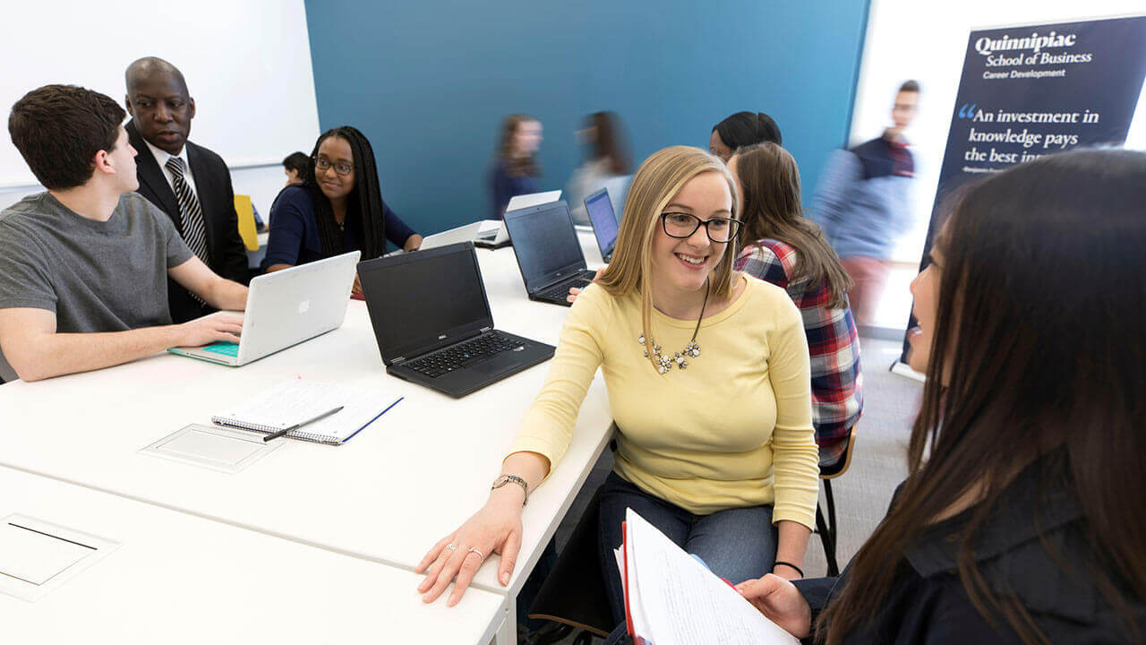 The School of Business is a hub for learning, networking, collaborating and innovating. You can work on projects in our team study rooms; access real-time financial, accounting and economic information in the Financial Technology Center; collaborate on your business idea in the M&T Bank Center for Innovation and Entrepreneurship; and build your network with one of the programs offered by the M&T Bank Center for Women and Business. Have questions about career opportunities or need help with your resume? Visit the School of Business Career Development Center.