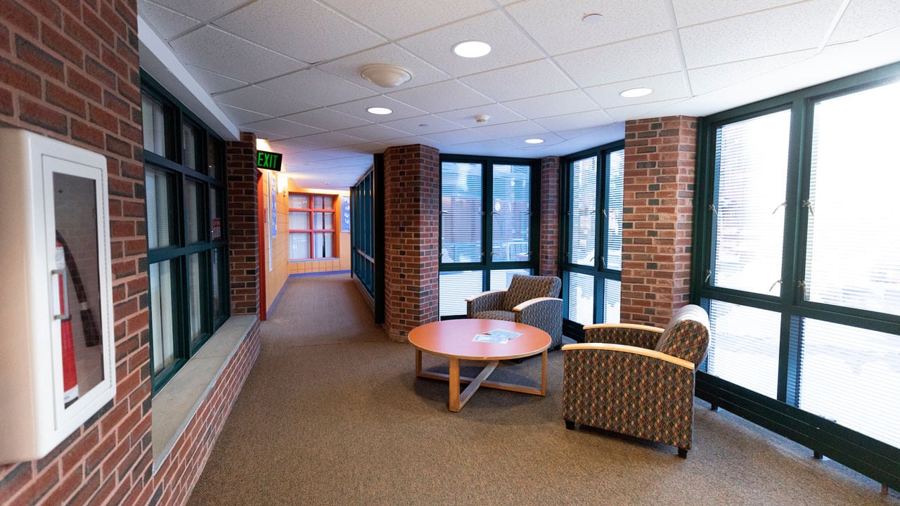 Mountainview features co-ed floors with suites assigned to a single sex that ­­each house 8 students. Each suite contains 4 bedrooms, a common living area, a bathroom and a storage area. In addition, the building has several common areas with kitchen areas on the second and third levels.