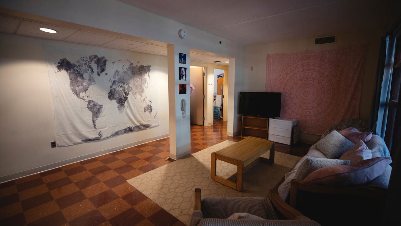 Typical suites in Mountainview each include double rooms, a common area and a bathroom.