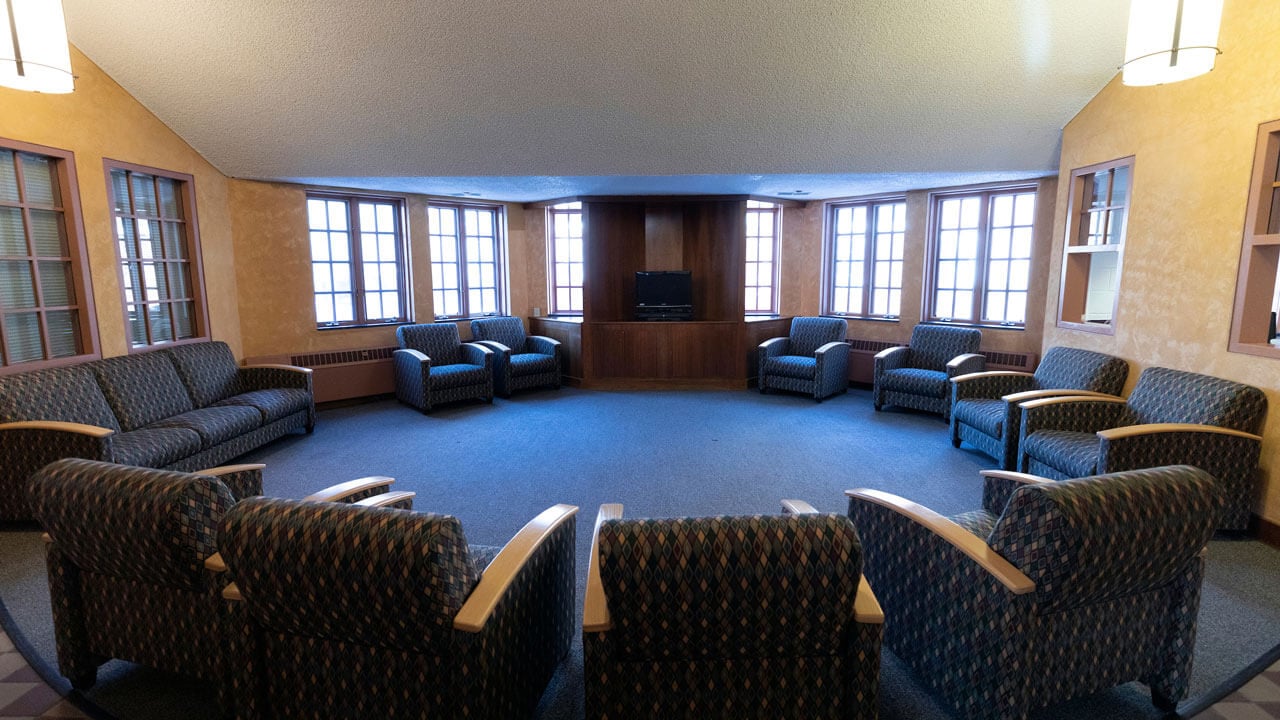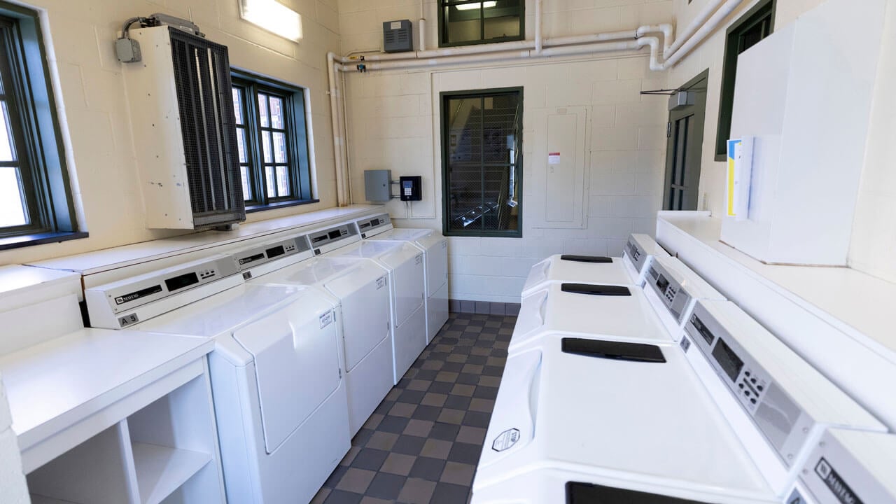 The Commons is a co-ed building by floor, and each hallway is home to approximately 50 residents. Bathrooms are located in the hallway, and each room has 4 loft beds, 4 desks, 4 free-standing closets and 4 separate phone and computer lines. The building also has one kitchen and one laundry area in each of the 3 lobbies.