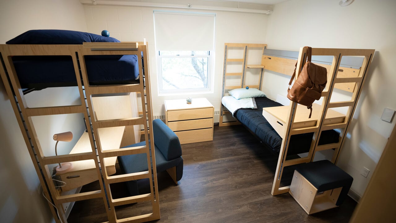 Typical suites in Larson, Perlroth and Troup each include double rooms, a common area and a bathroom.